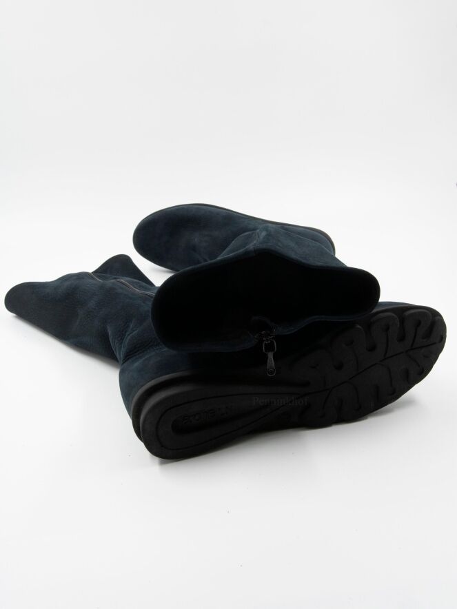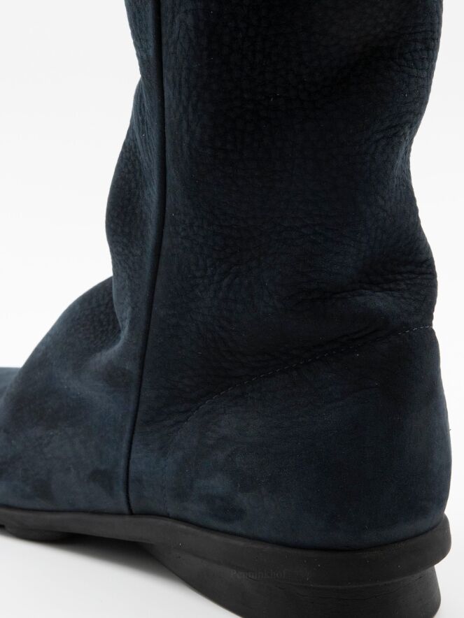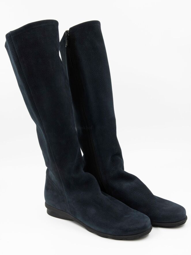 A boot from Arche in the color navy blue. On the inside of the shaft is a black zipper over the entire length. The inside of the shaft is unlined.
