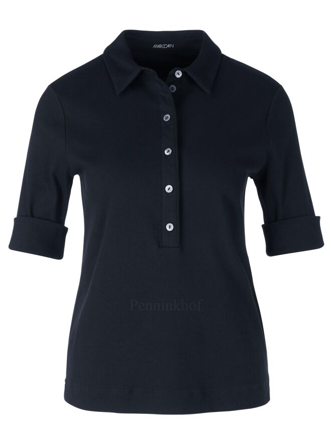 A polo shirt from Marc Cain in the color navy blue. The shirt has short sleeves and can be washed at 30 degrees.