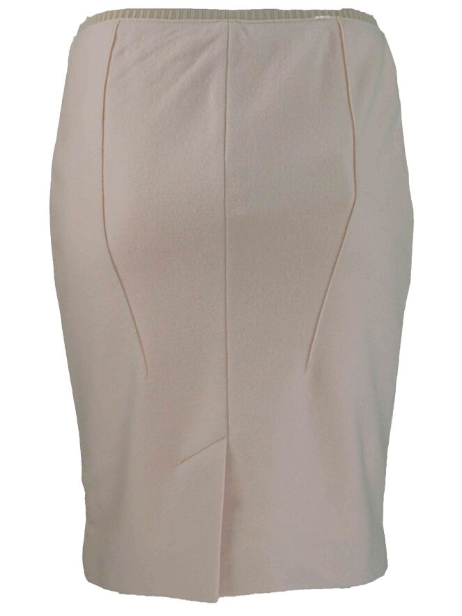 A skirt of the brand Marc Cain in the color camel. The skirt has an inner lining and has an elastic waistband. This skirt should not be washed.