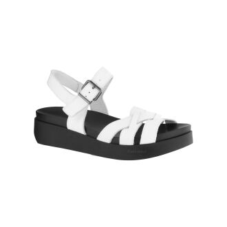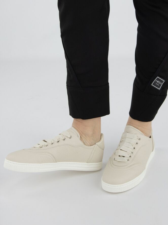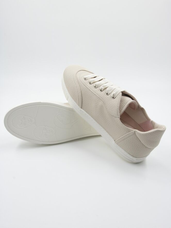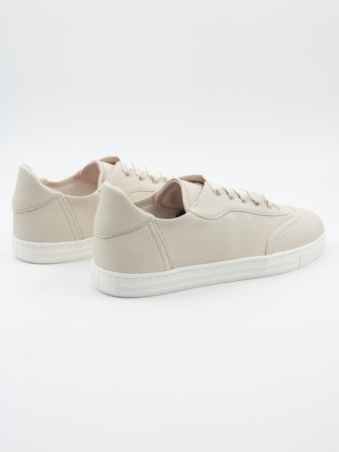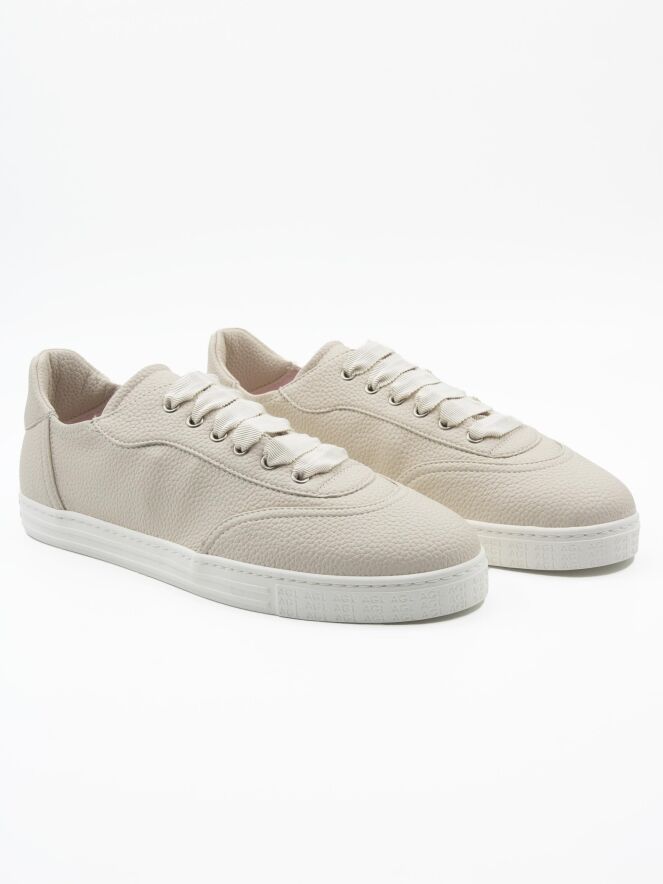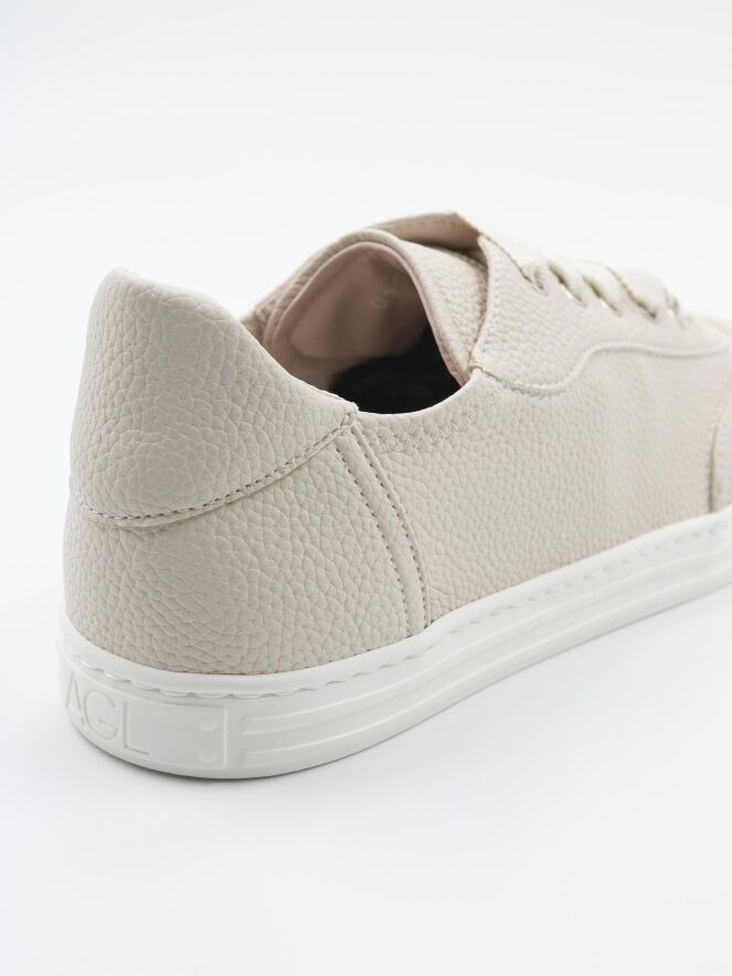 A low luxury sneaker by AGL in cream white color. The sneaker has a white sole and the inside is lined with leather.