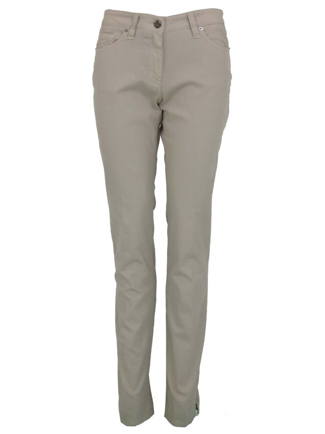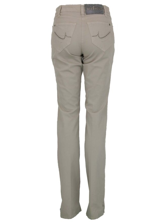 Airfield pants in the color beige. The pants are in a 5 pocket model. On the back pockets are fine rhinestones. These pants can be washed at 30 degrees.