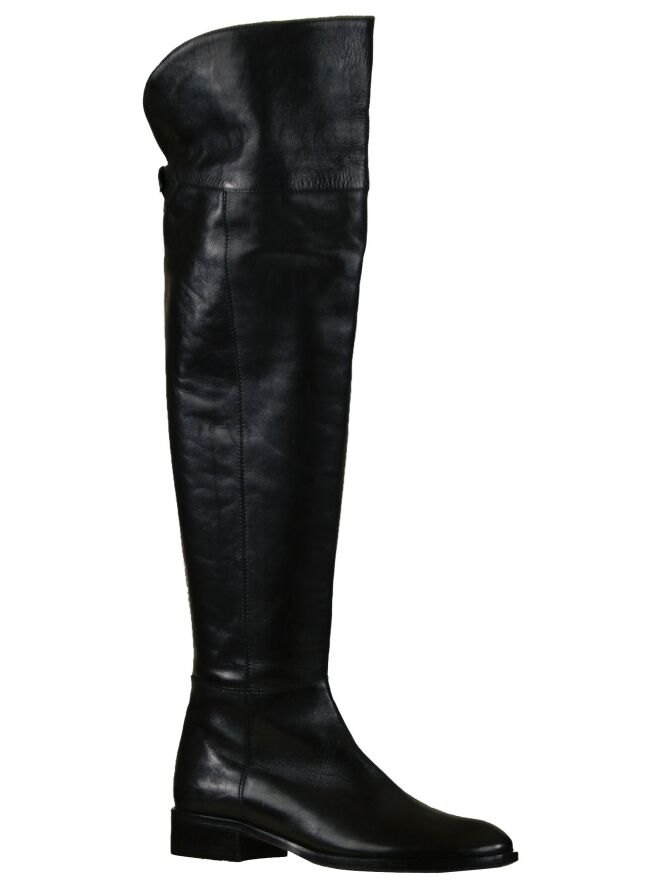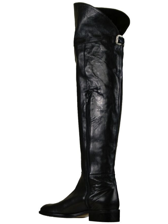 A leather boot of the brand Angelo Bervicato in the color black. On the back of the cover is a silver-colored buckle. The zipper on the inside of the shaft is from the sole till mid-calf. The height of the shaft is 44 cm and the circumference is 38 cm