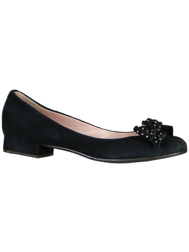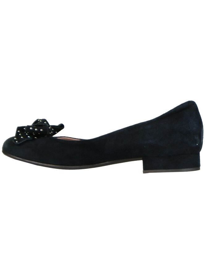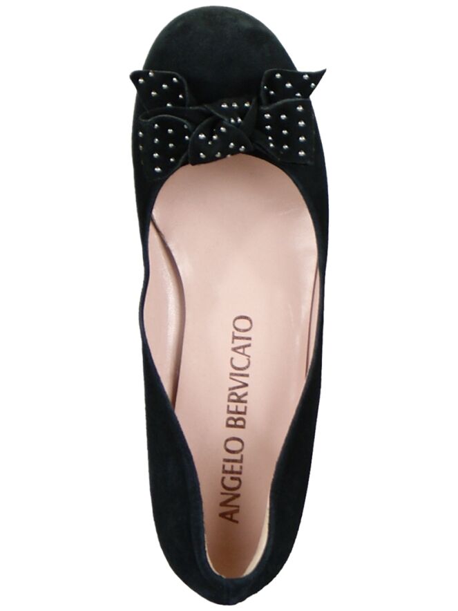 A ballerina from Angelo Bervicato in the color black. On the forefoot is a bow with decorative pearls. The inside of the ballerina is lined with leather.