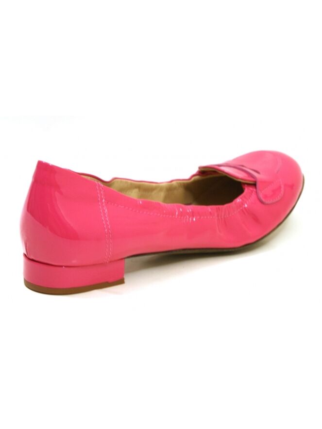 A ballerina from Angelo Bervicato in the color fuchsia. The ballerina has a round toe with a stitched band in the same material as the ballerina itself. Along the shaft is a band with elastic. The inside is lined with leather.