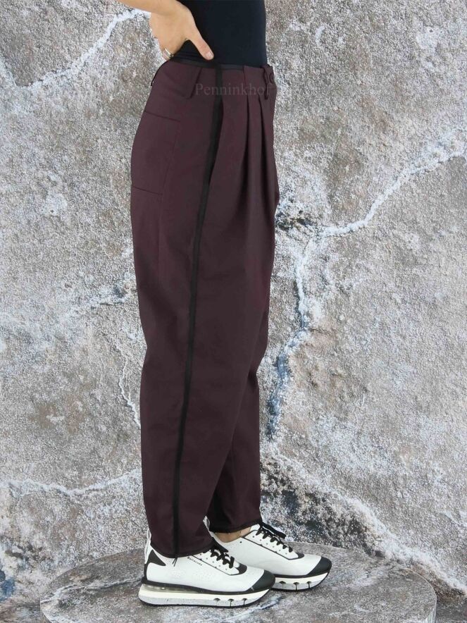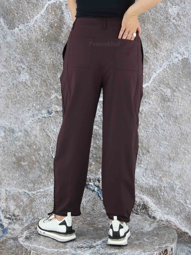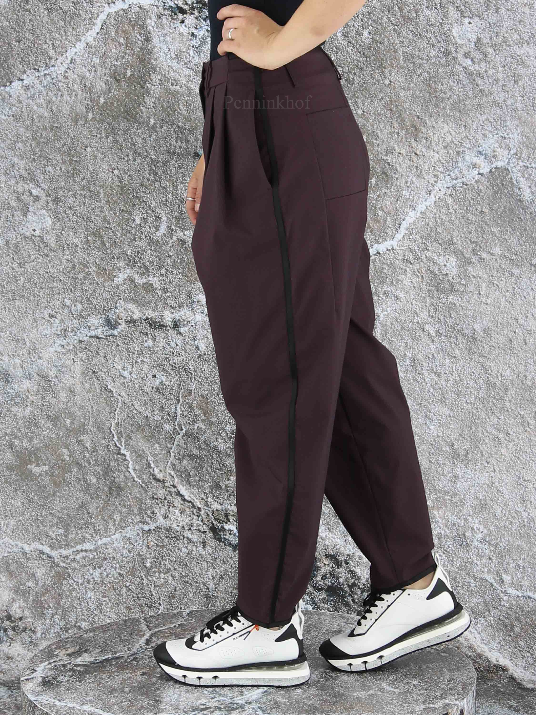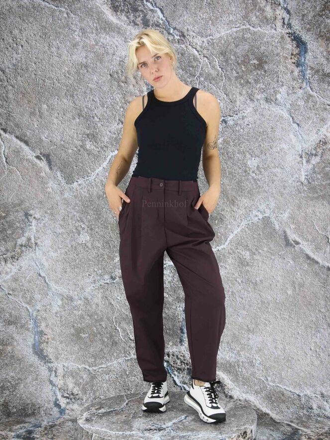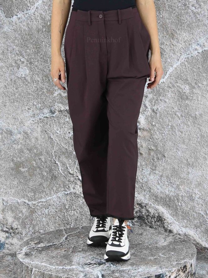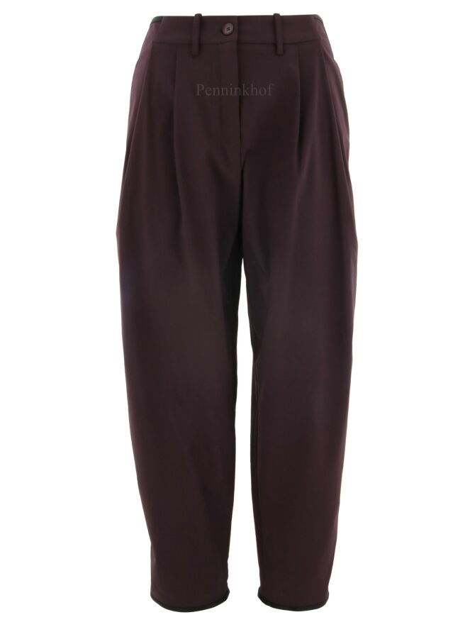 Pants by Annette Görtz in the color burgundy red. The pants have several pleats from the waist down. The pants have side pockets and can be washed at 30 degrees.
