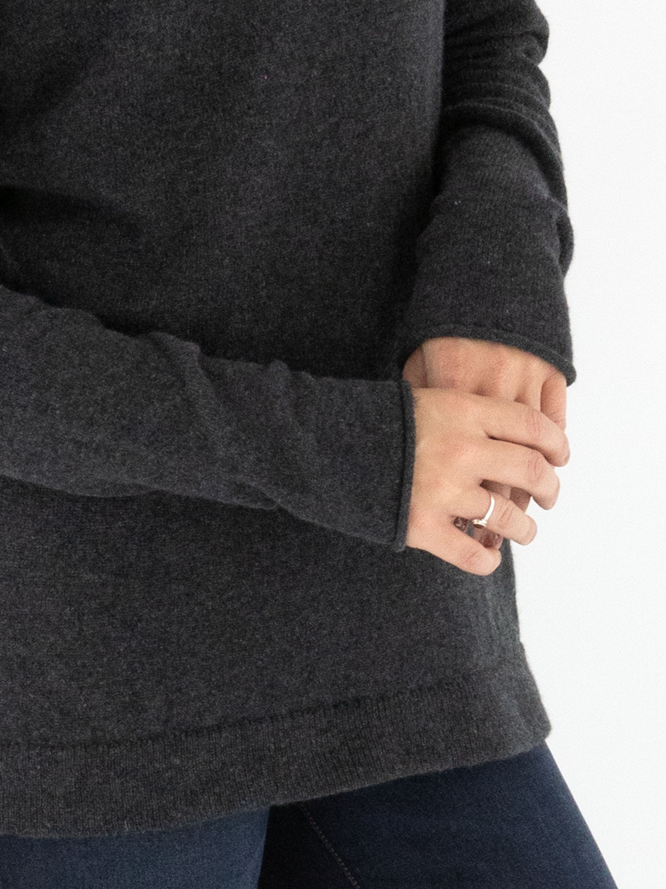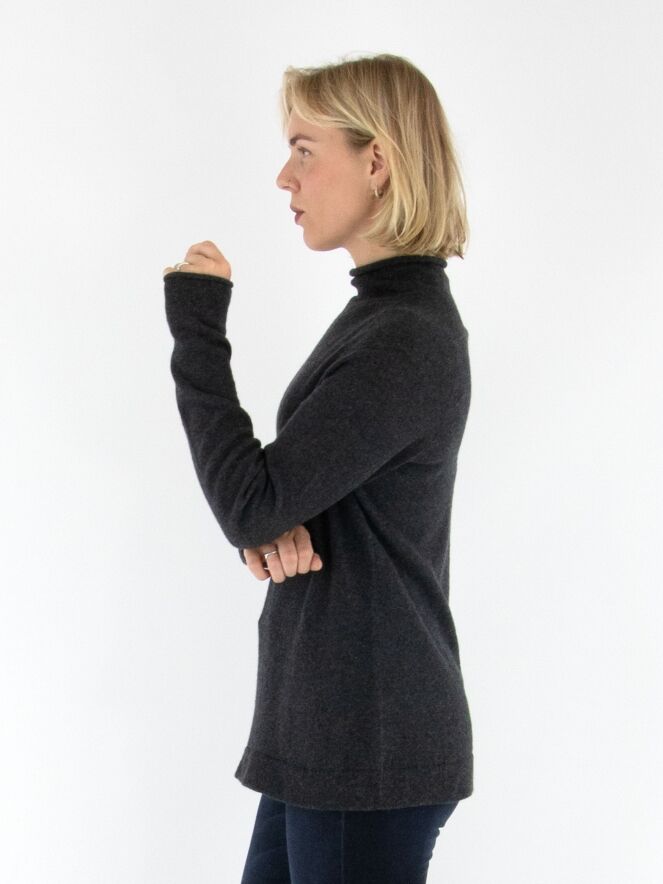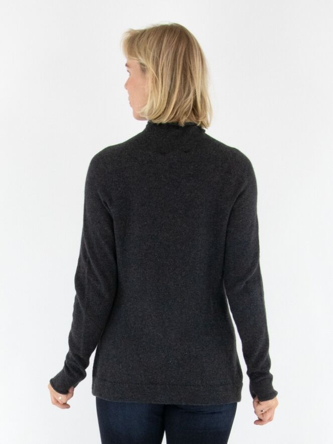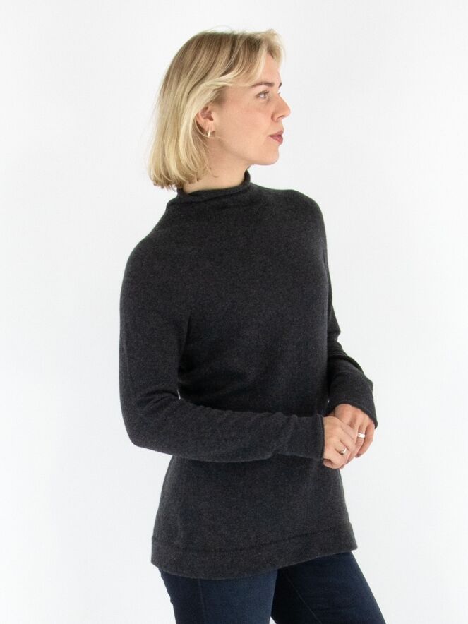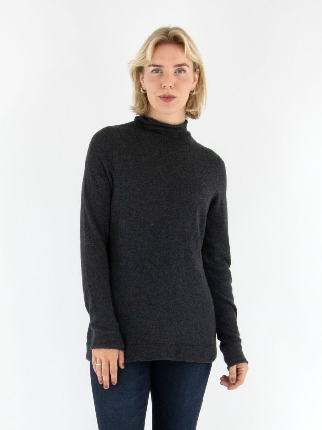 A luxurious pullover by Annette Görtz in dark grey. The pullover features a draped turtleneck. This pullover should be hand-washed.
