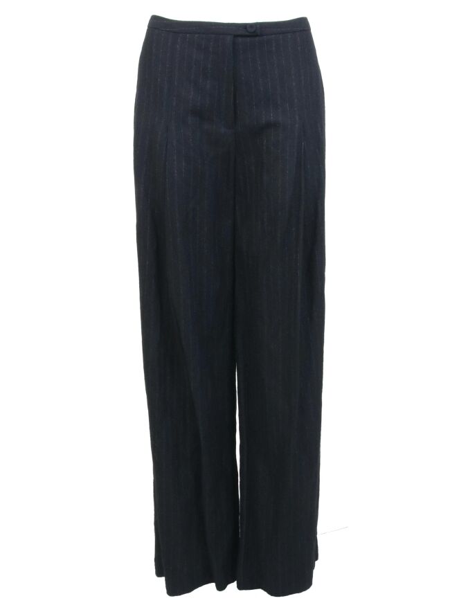 Wide pants by Annette Görtz in a pinstripe with the colors black and white. There is a pleat on the front leg. These pants may not be washed.