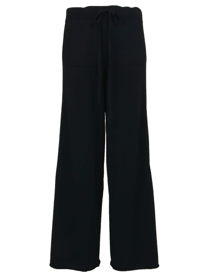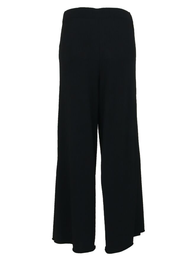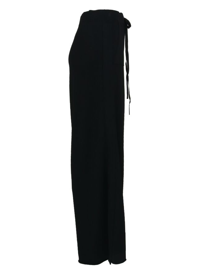 A very wide luxury trousers by Annette Görtz in the color black. In the waist is a wide elastic band. There are 2 bags under the waist. On the sides is a wide ribbed piping. These pants can be washed at 30 degrees.