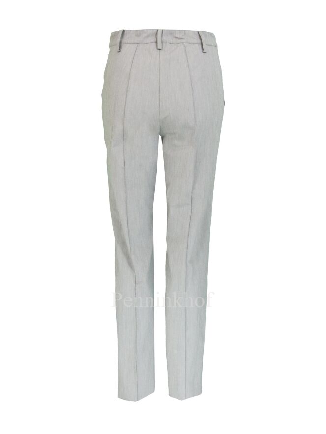 Trousers by Annette Görtz in the color gray. The fabric is in a crêpe embossed structure. There is a stitched seam in the middle of the legs. The pants have side pockets and can be washed at 30 degrees.
