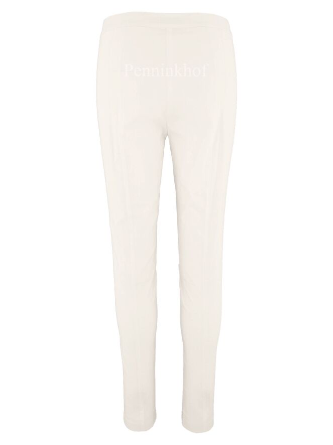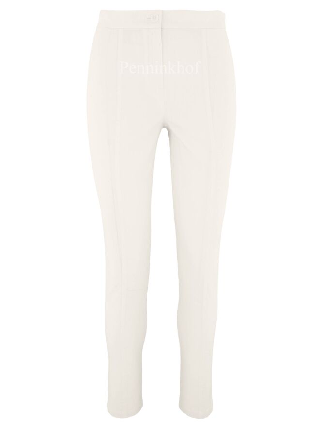 Pants by Annette Görtz in the color creamy white. along the side of the legs is a fine ribbed trim in the same color as the pants. These pants can be washed at 30 degrees.