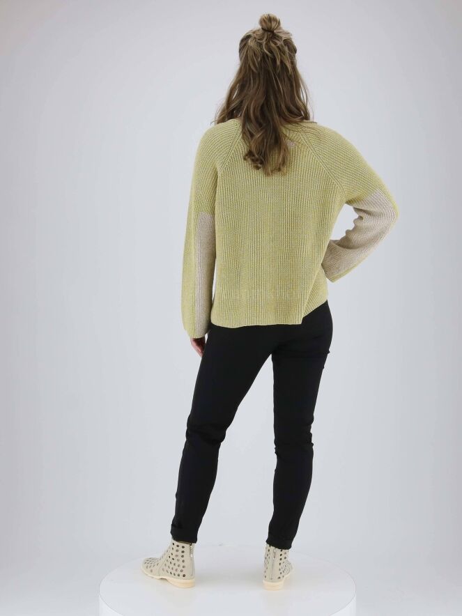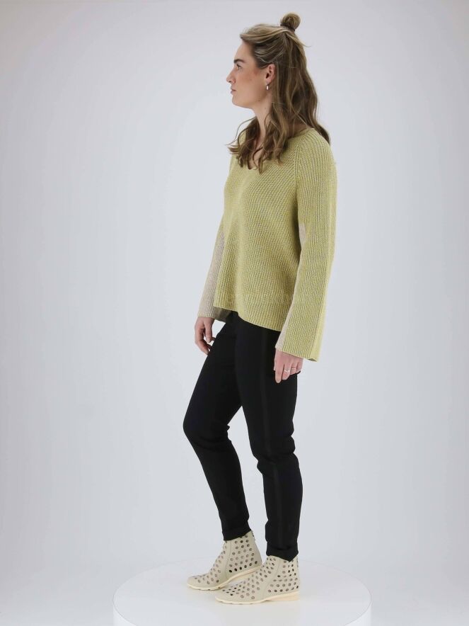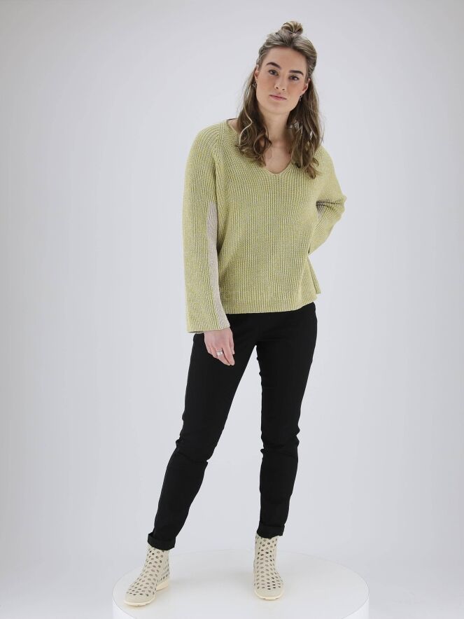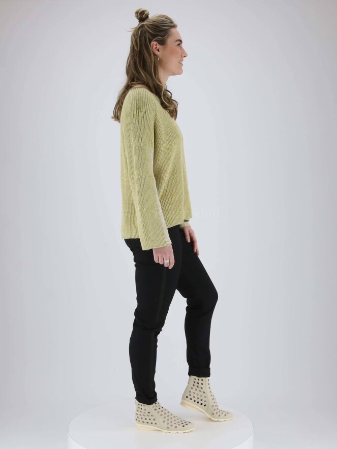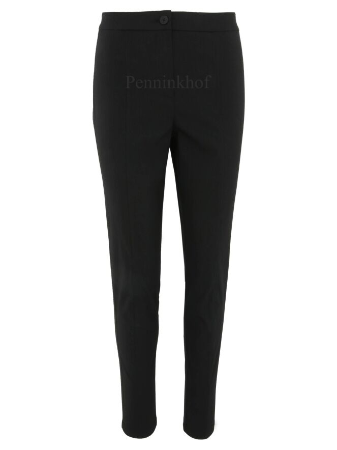 Pants by Annette Görtz in the color black. along the side of the legs is a fine ribbed trim in the same color as the pants. These pants can be washed at 30 degrees.