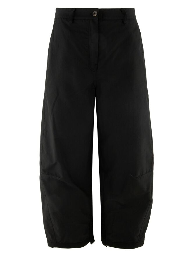 Trousers by Annette Görtz in black. The trousers feature side pockets. A flexible wire is integrated into the hem of the legs, allowing the shape of the legs to be adjusted as desired. These trousers can be washed at 30 degrees.