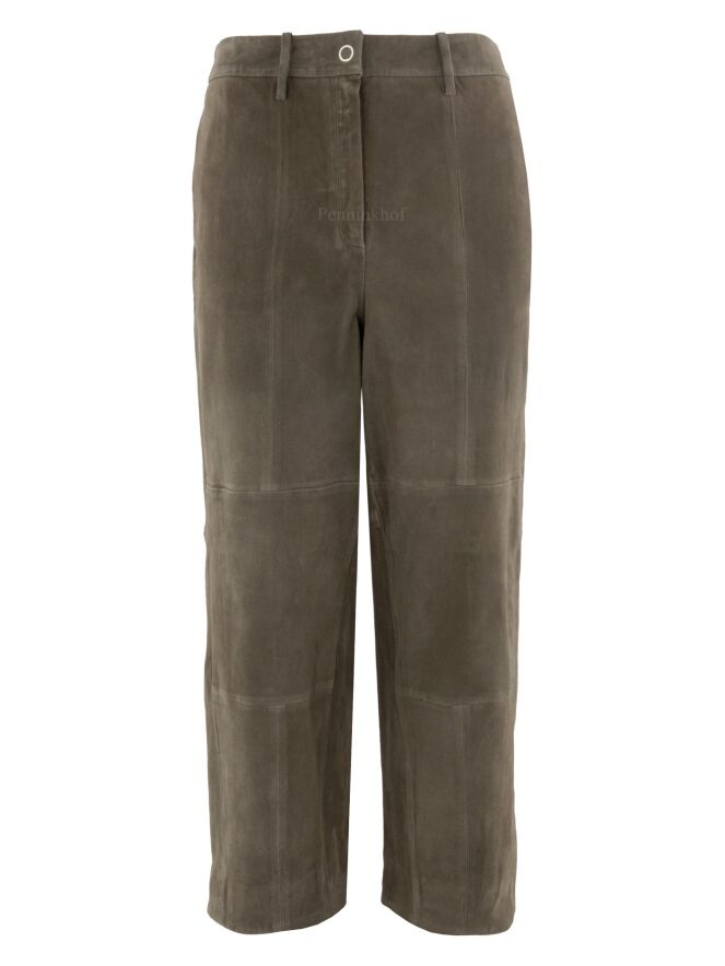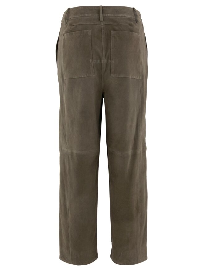 Straight-cut leather trousers from Annette Görtz in a taupe colour. The trousers have side pockets. These trousers should not be washed.