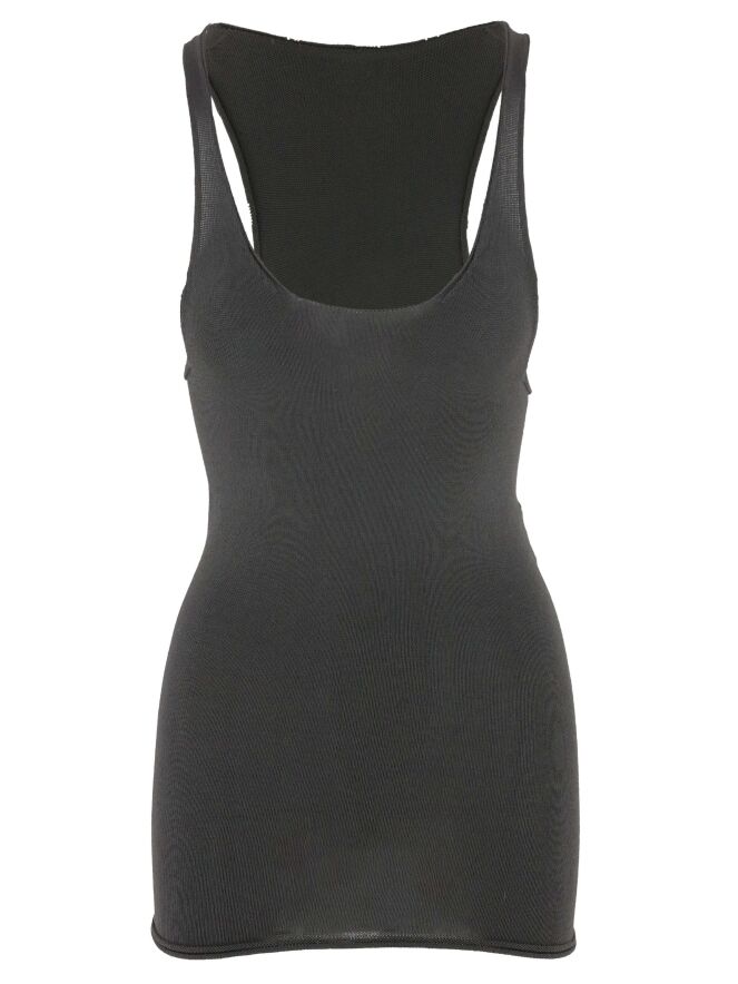 A long top by Annette Görtz in the color gray. The top has a low round neckline and can be washed by hand.