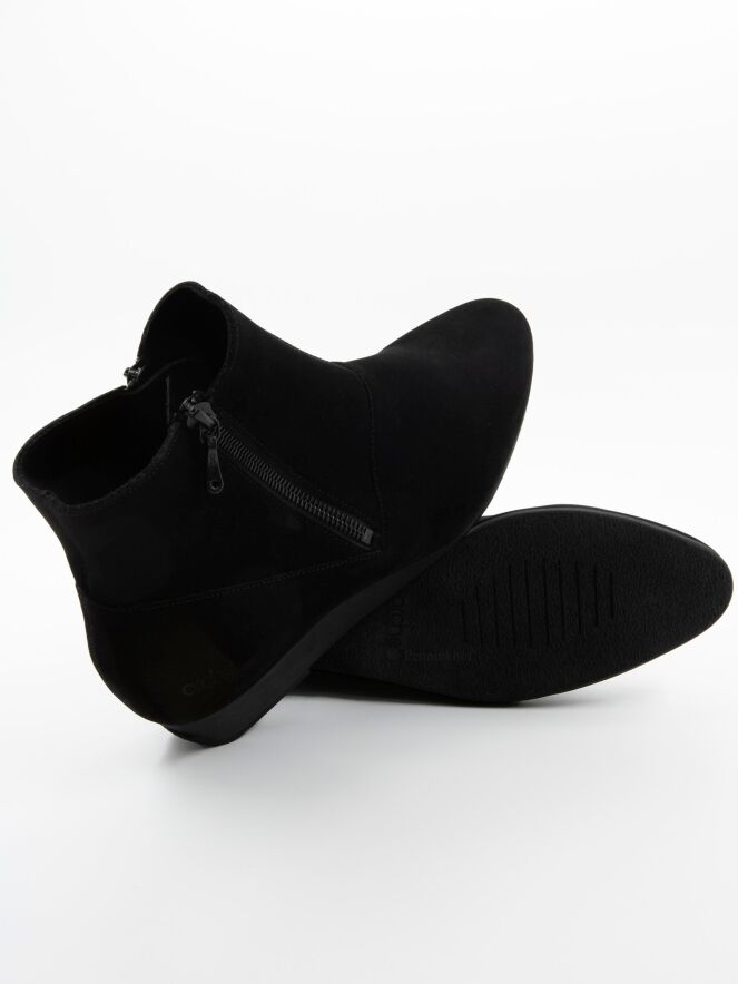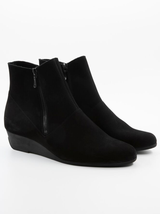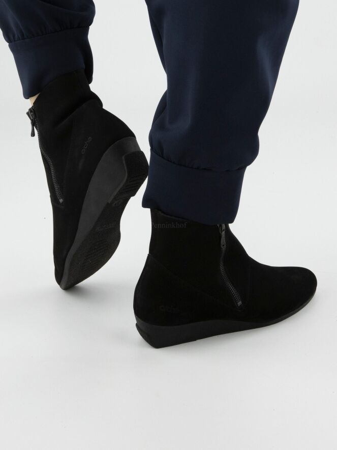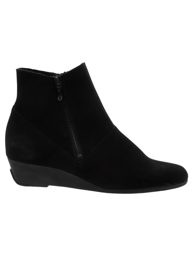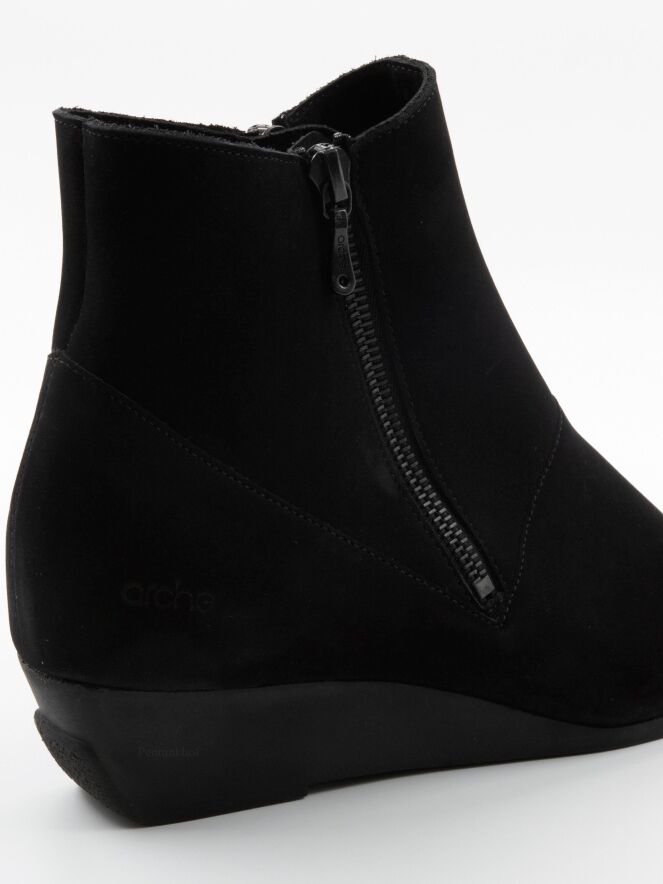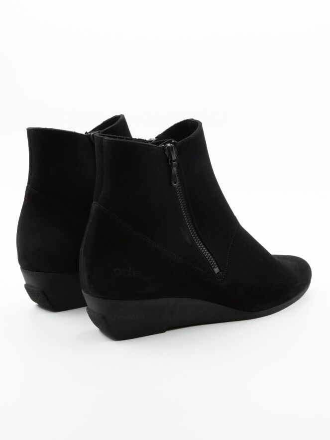 An ankle boot from Arche in the colour black. The boot has a slim toe. There is a zip on both sides of the shaft. The inside is unlined.