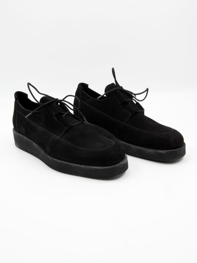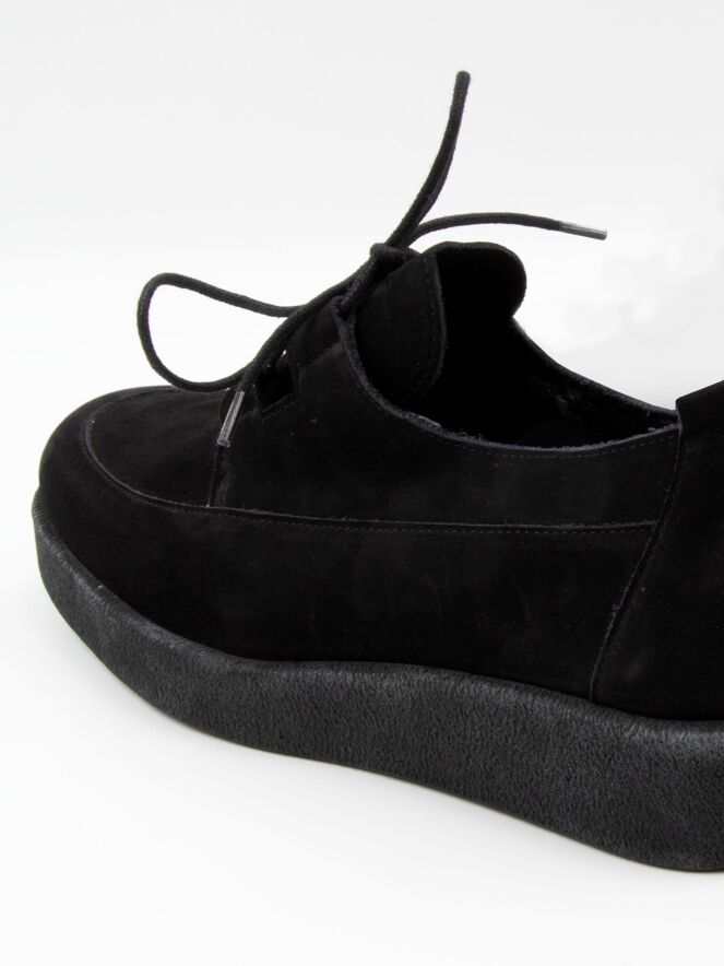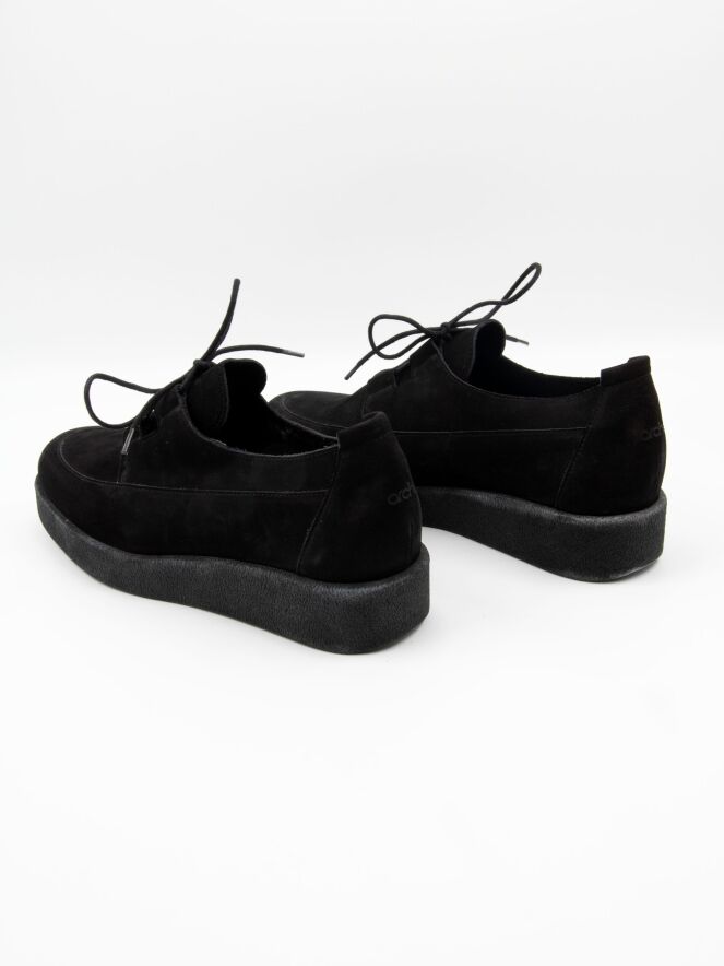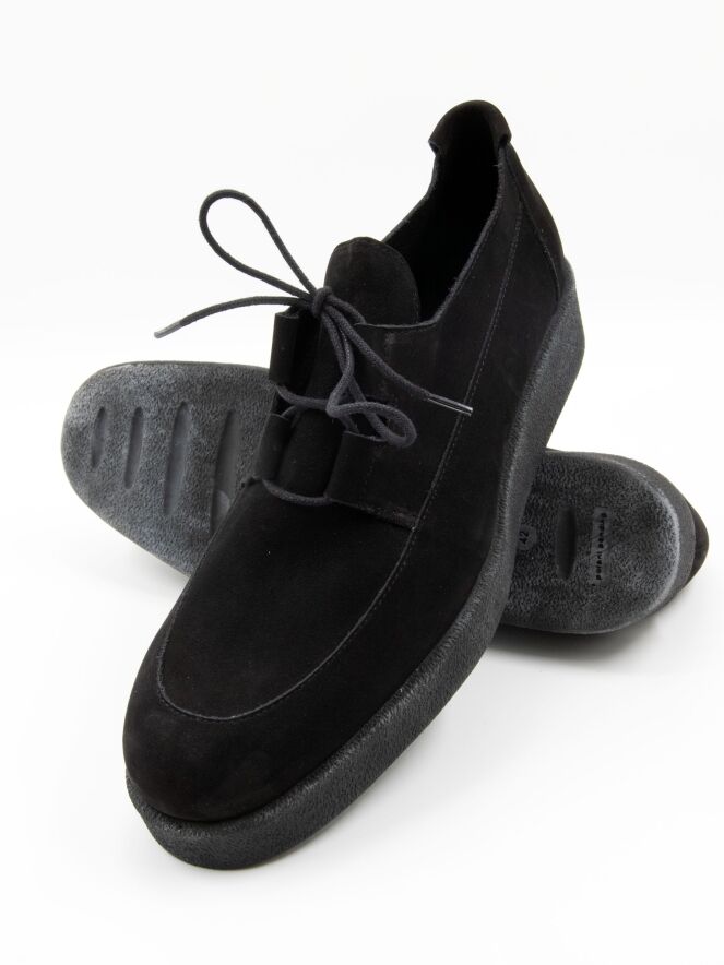 A lace-up shoe from Arche in black. The shoe features four wide lace loops and a black platform sole. The interior is unlined.