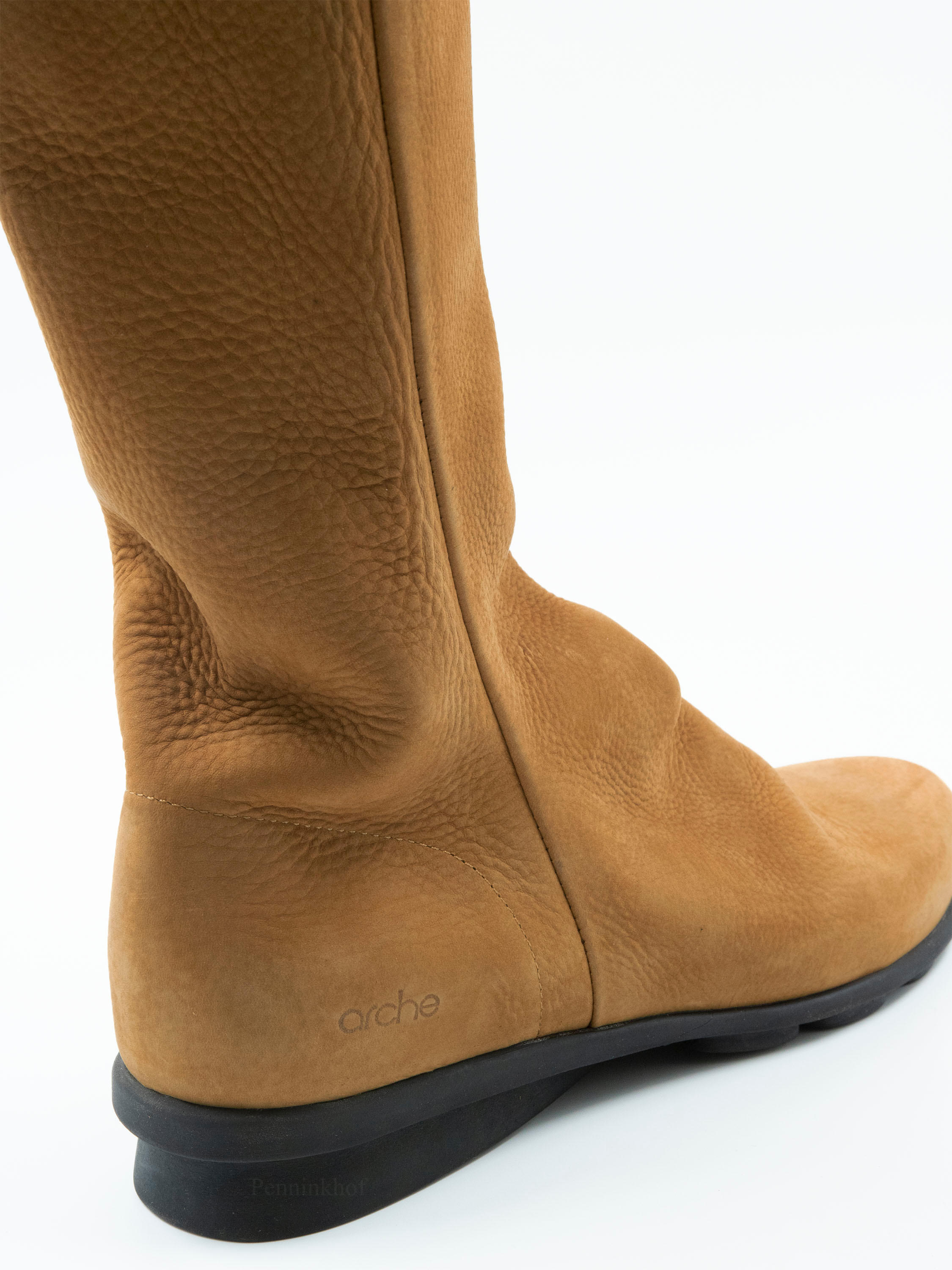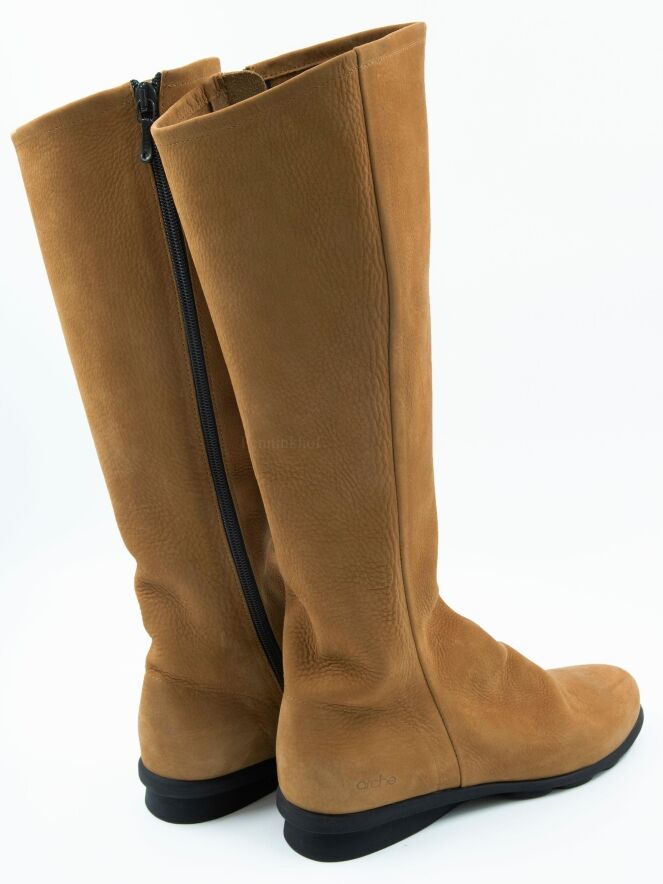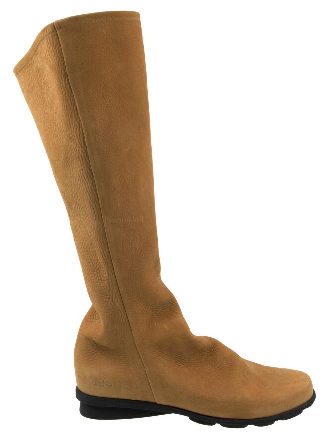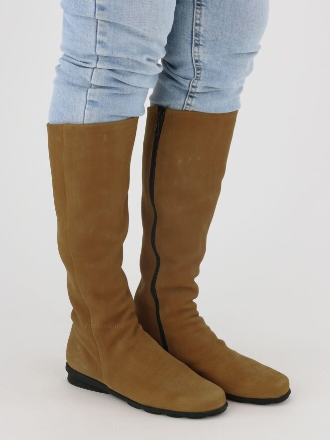 A boot from Arche in the color cognac. On the inside of the shaft is a black zipper over the entire length. The inside of the shaft is unlined.