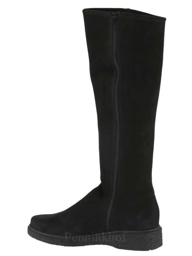 A high boot from Arche in the color black. The boot has a sporty black sole. There is a black zipper on the inside. The inside of the shaft is unlined.
