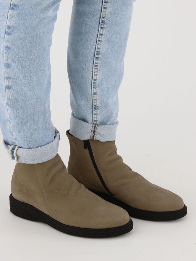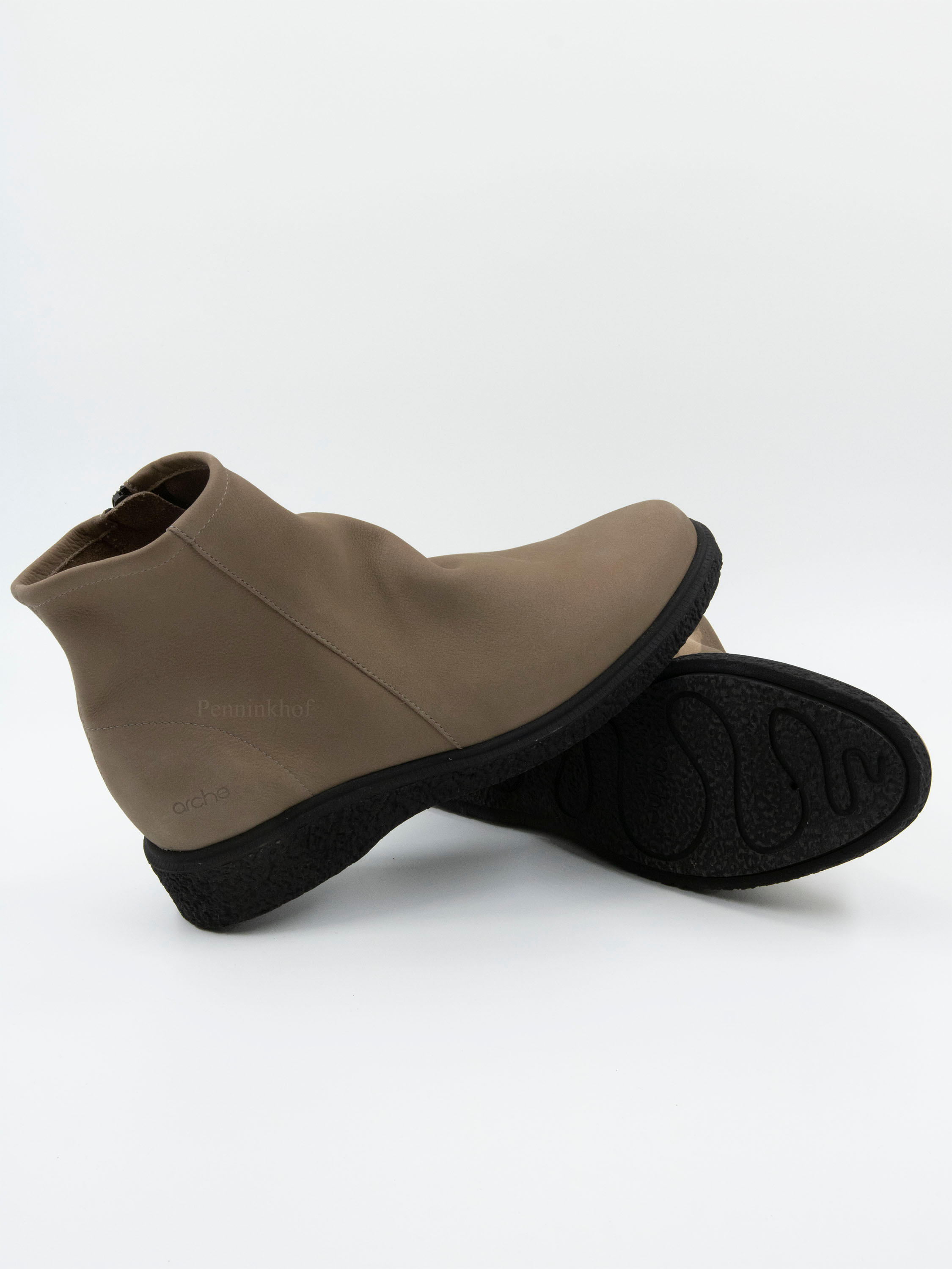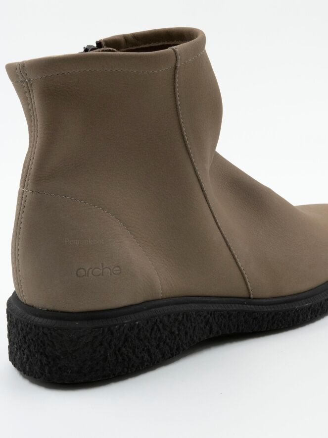 A boot from Arche in the colour grey. On the inside is a black zip. The sole is in the colour black. The inside is unlined.
