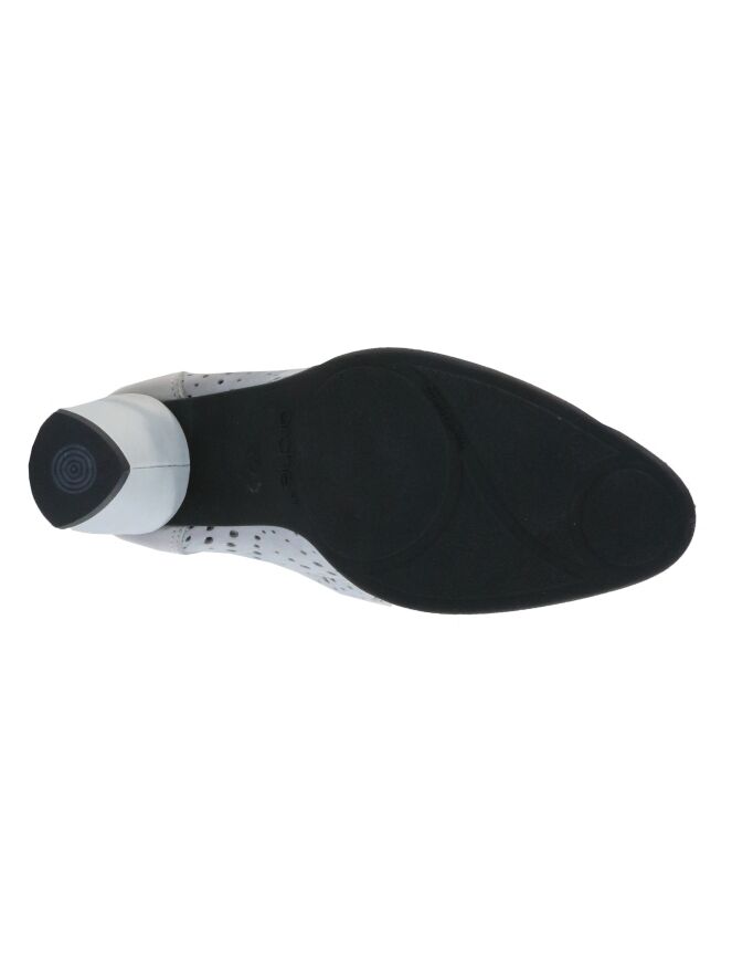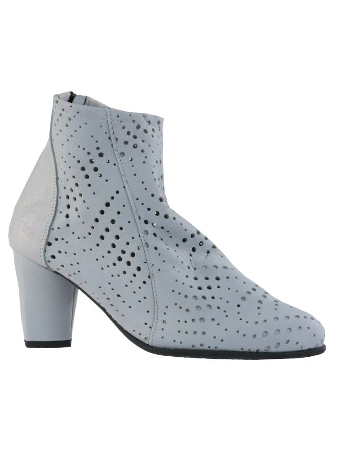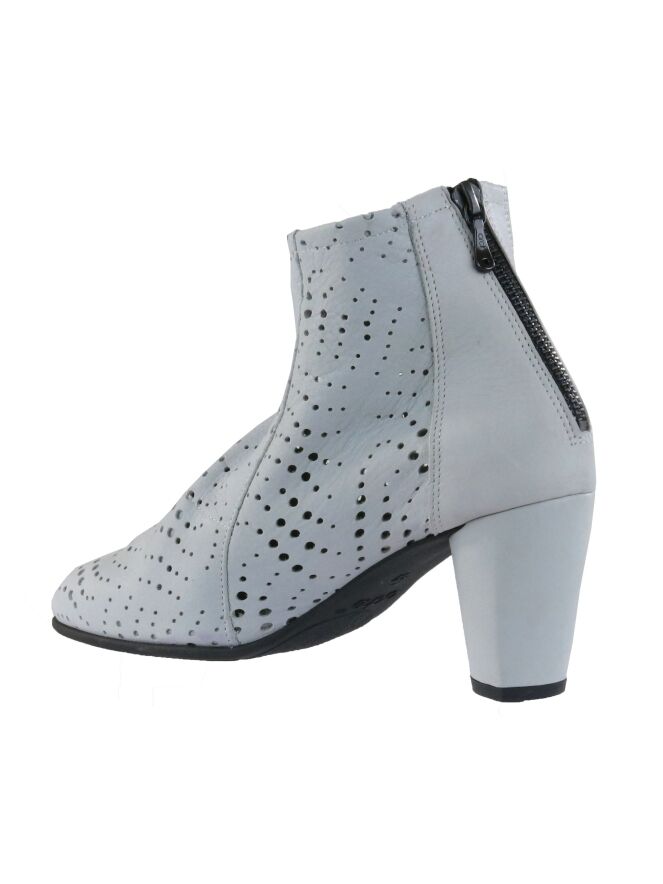 A short boot from Arche in the color light grey. The leather is finely perforated. The heel is in solid leather with a zipper in a black color. The inside is unlined.