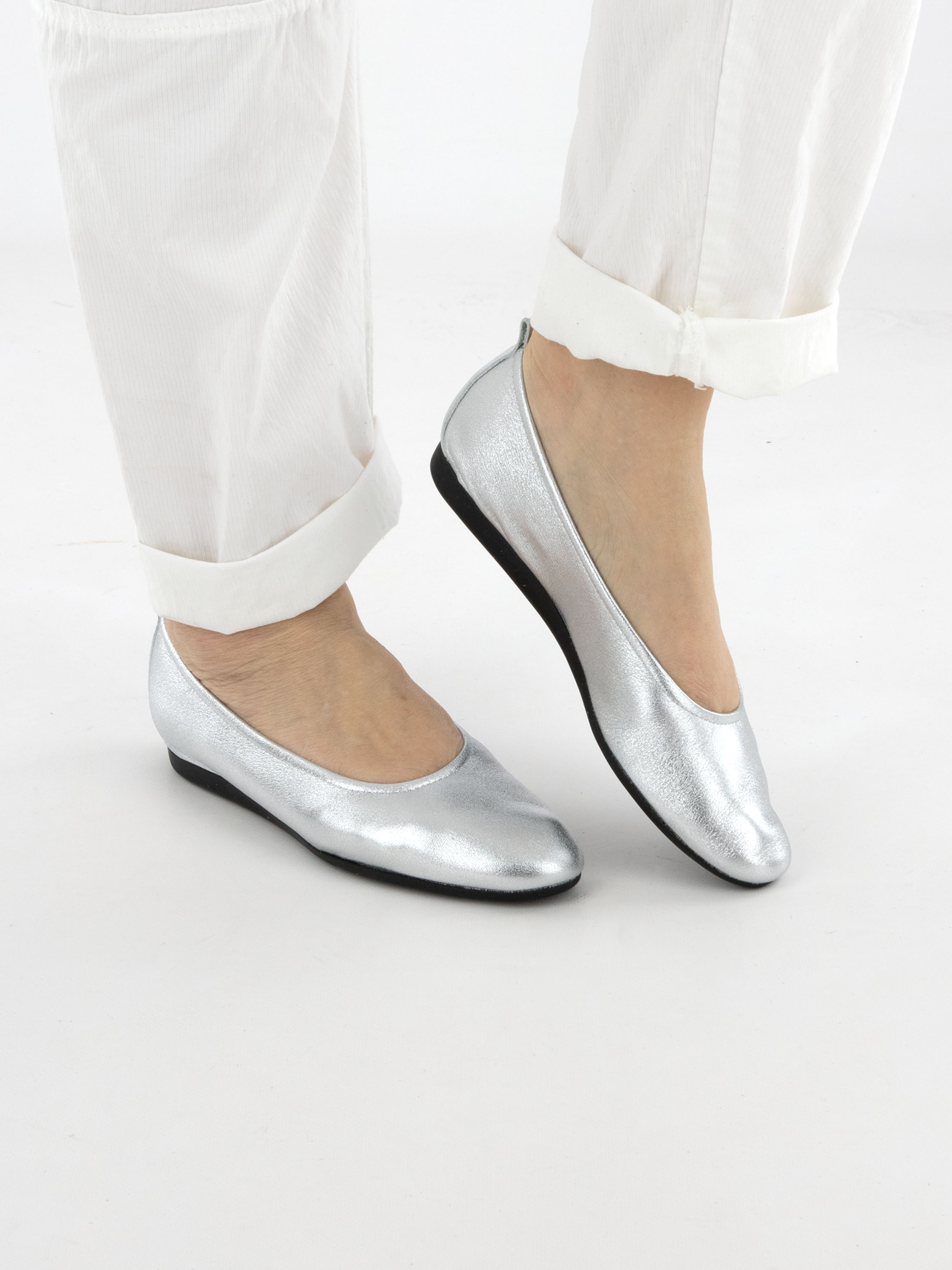 The Laius model by Arche is a timeless essential in an elegant silver shade. Crafted from premium calf leather and designed in a solid color, this ballerina offers a refined and versatile look. The toe is gracefully rounded, and the unlined interior enhances suppleness and natural comfort. A flexible latex sole provides cushioning, while the slightly raised heel section adds extra support.