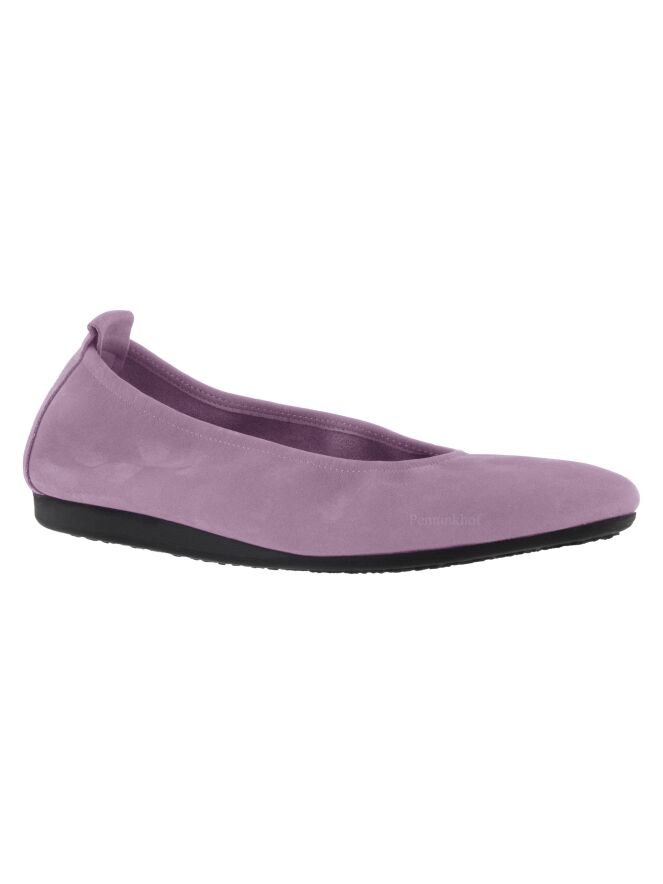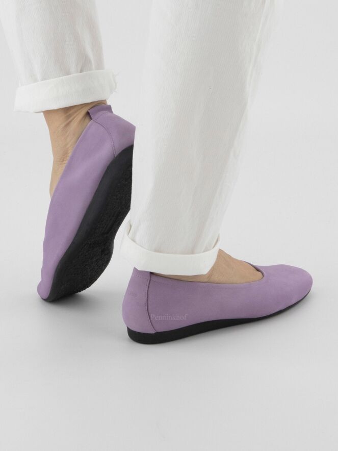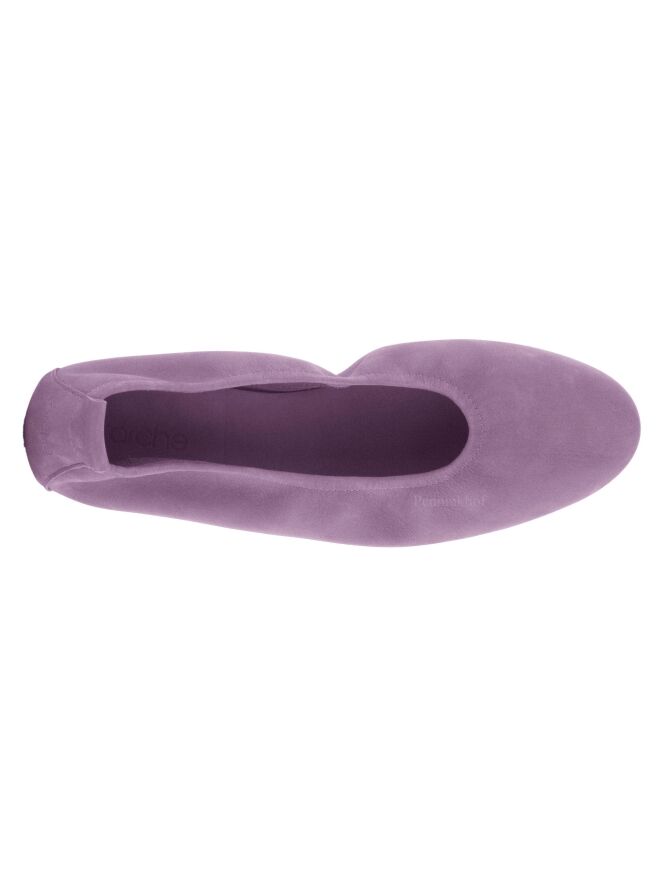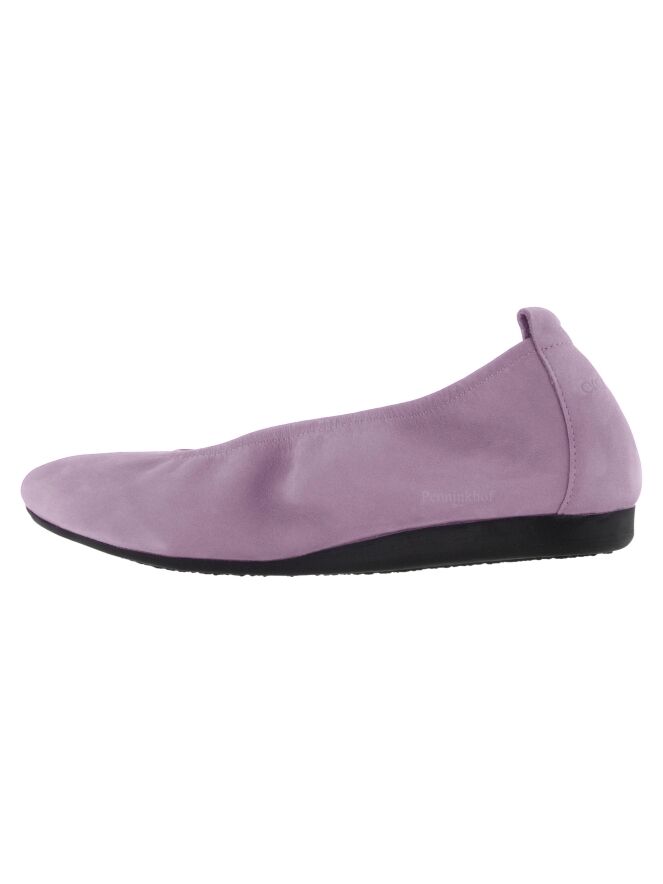The model Laius is a basic model of the brand Arche in the color lilac. This ballerina is made of high quality calf suede and has a latex sole. The model has a uni color. The toe of the ballerina is nicely rounded. The ballerina is not lined on the inside. The rear part of the sole is slightly raised which contributes to more comfort.
