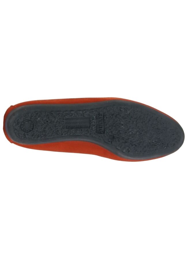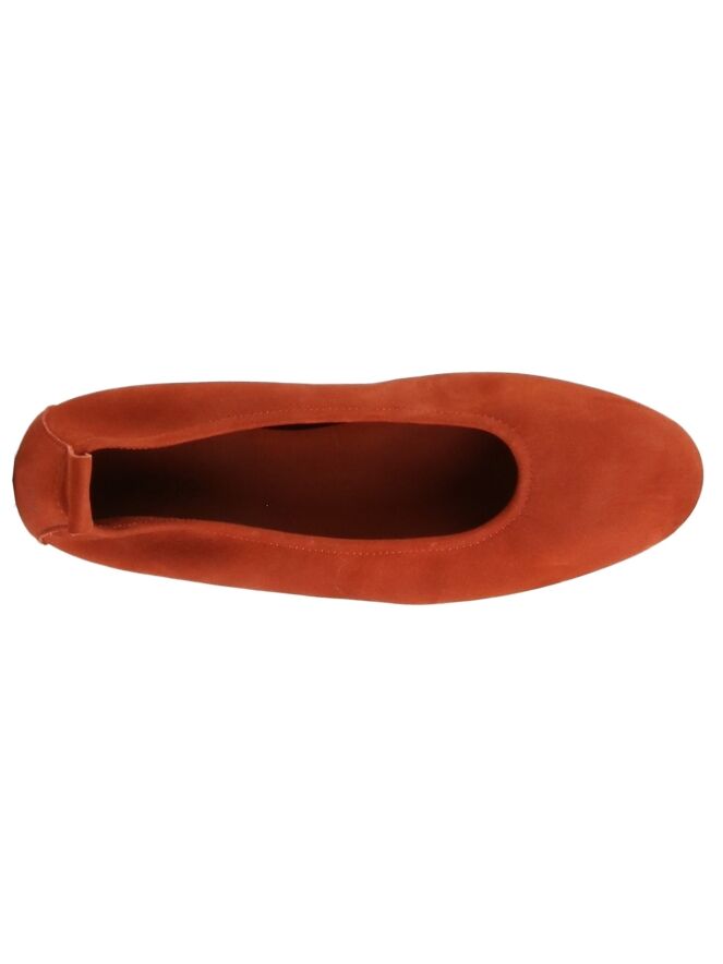 The Laius model is a basic model of the Arche brand. This ballerina is made of a high quality calf suede and has a latex sole. The model has a terra cotta color. The toe of the ballerina is nicely cut around. The ballerina is not lined on the inside. The rear section of the sole is slightly raised which contributes to more comfort.
