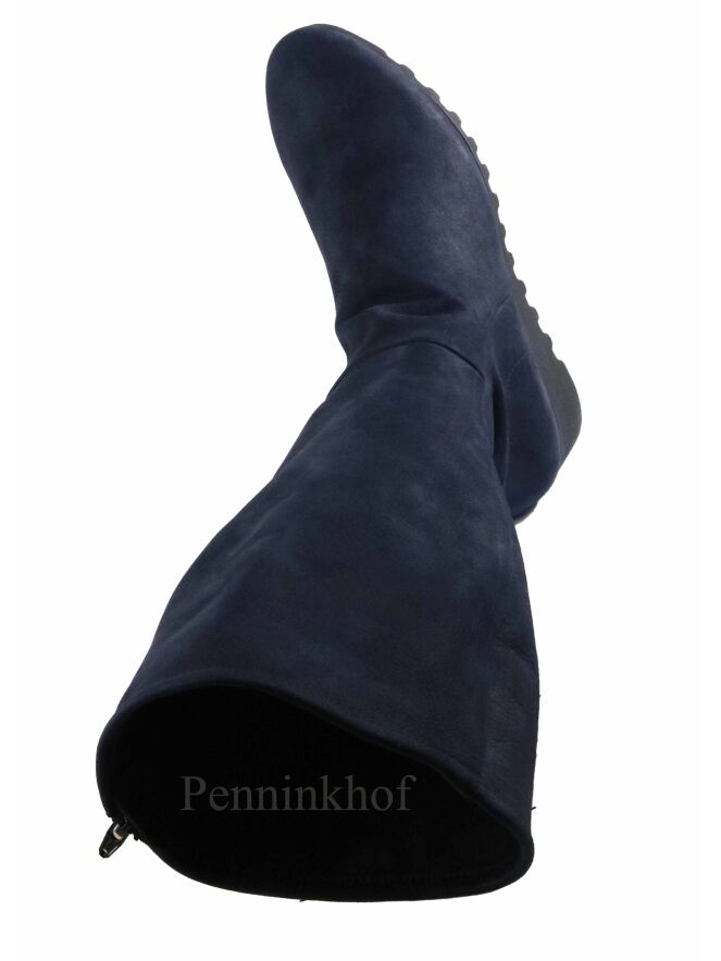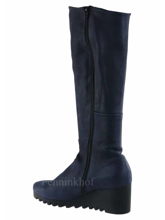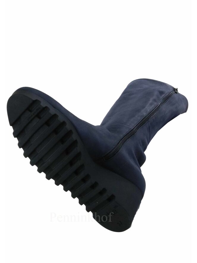An Arche boot in a mottled anthracite color. The black sole is serrated. On the inside is a black zipper. The boot has a round toe and the inside is unlined.