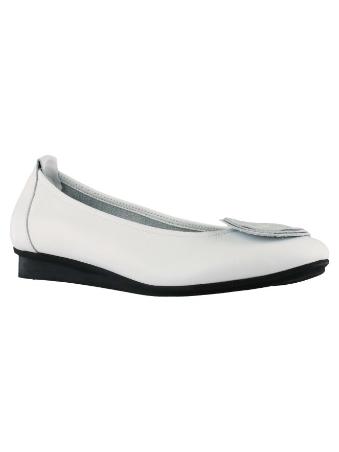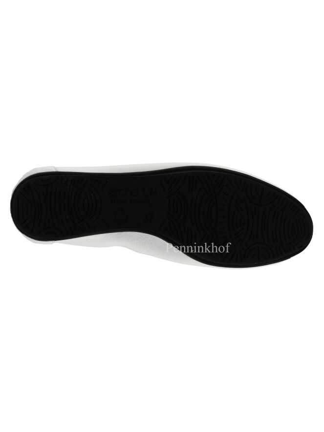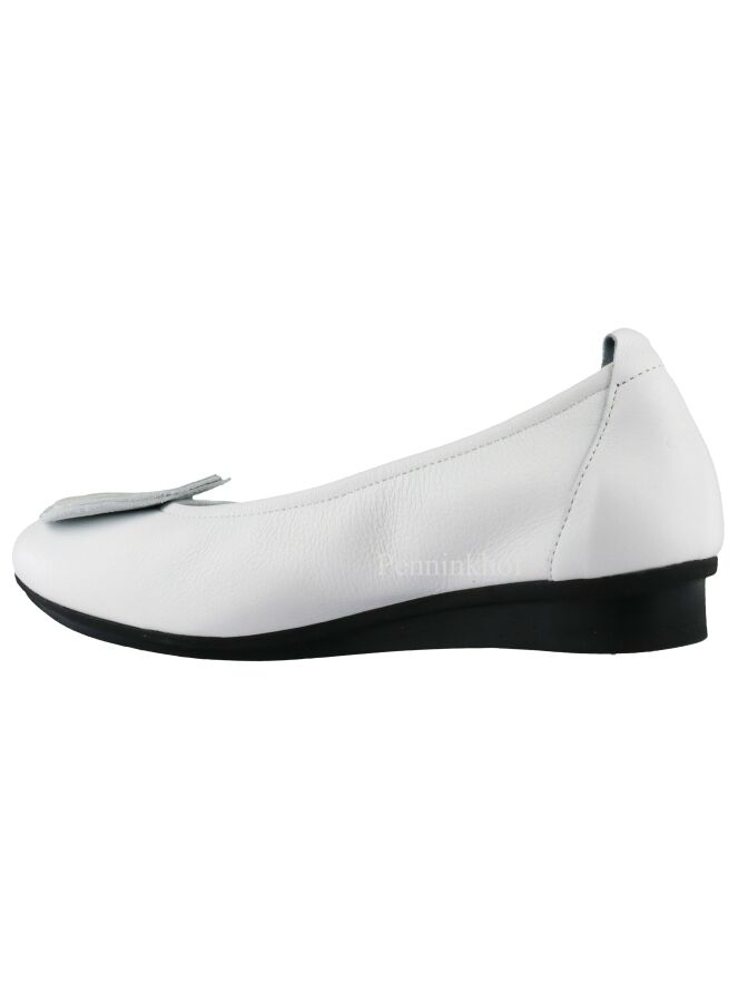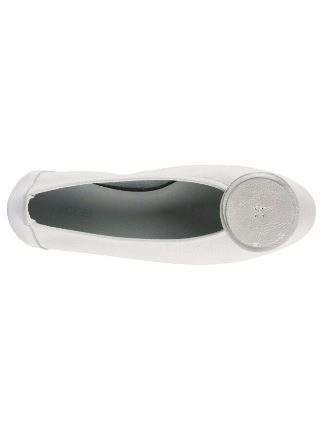 A ballerina from Arche in white. On the forefoot, round-cut leather in the same color is white in the layers. The inside of the ballerina is unlined.