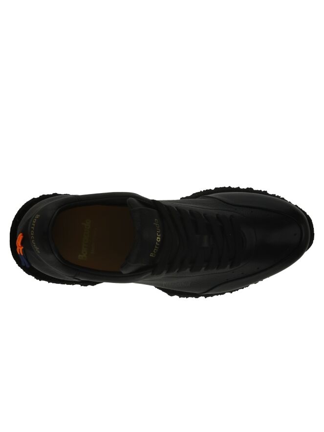 A sneaker from Barracuda in the color black. The sneaker has a sporty excellent recycled sole with a speckled pattern in the bottom layer. The insole is removable. The inside is lined with leather.