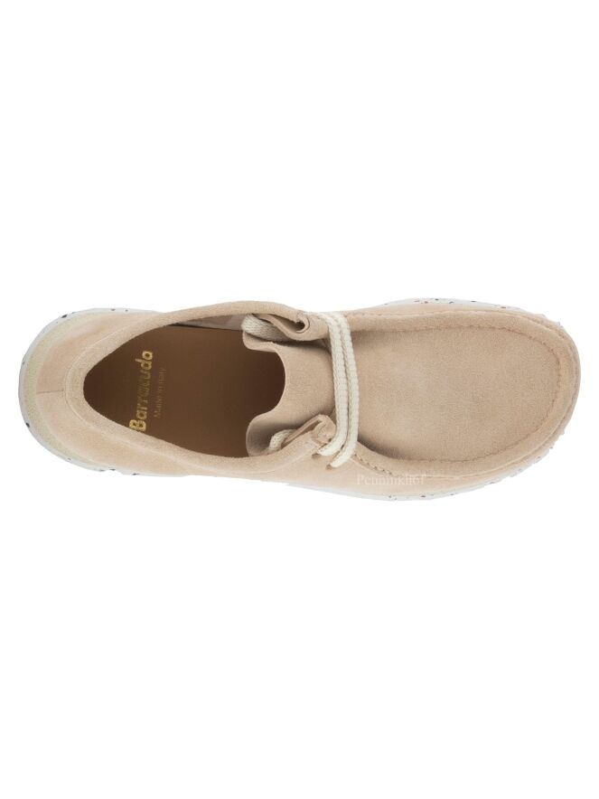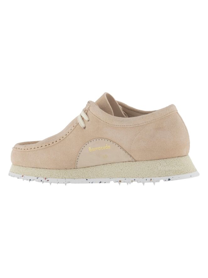 A slip-on from Barracuda with a lace in a soft pink color. The sole is built up in 2 layers with a beige and a creamy white layer. The inside is lined with leather.