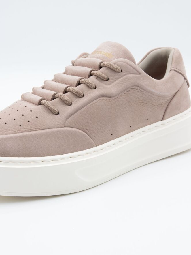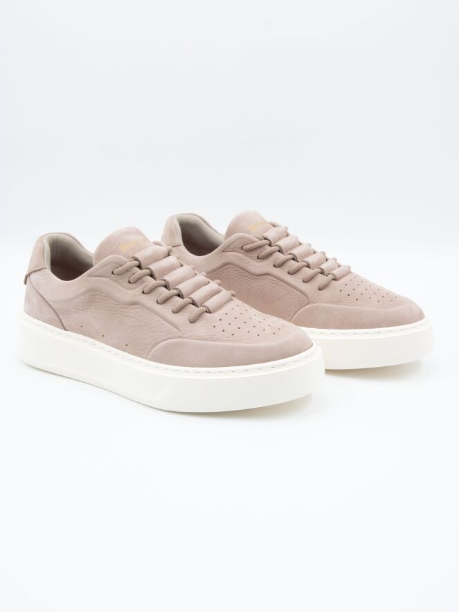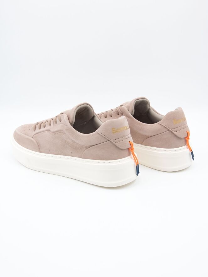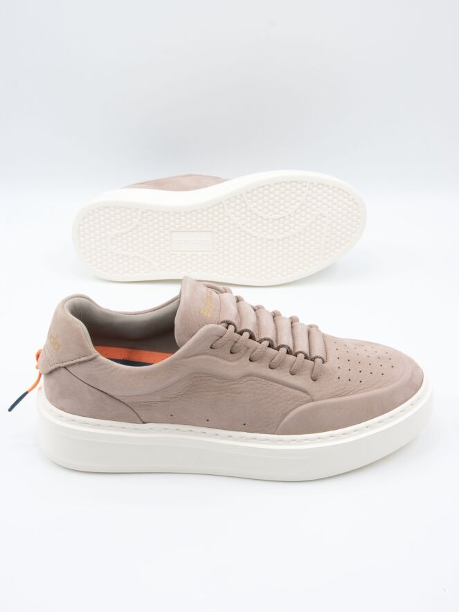 A low sneaker by Barracuda in gray color. The forefoot is finely perforated, and the sole is in a cream color. The interior is lined with leather.