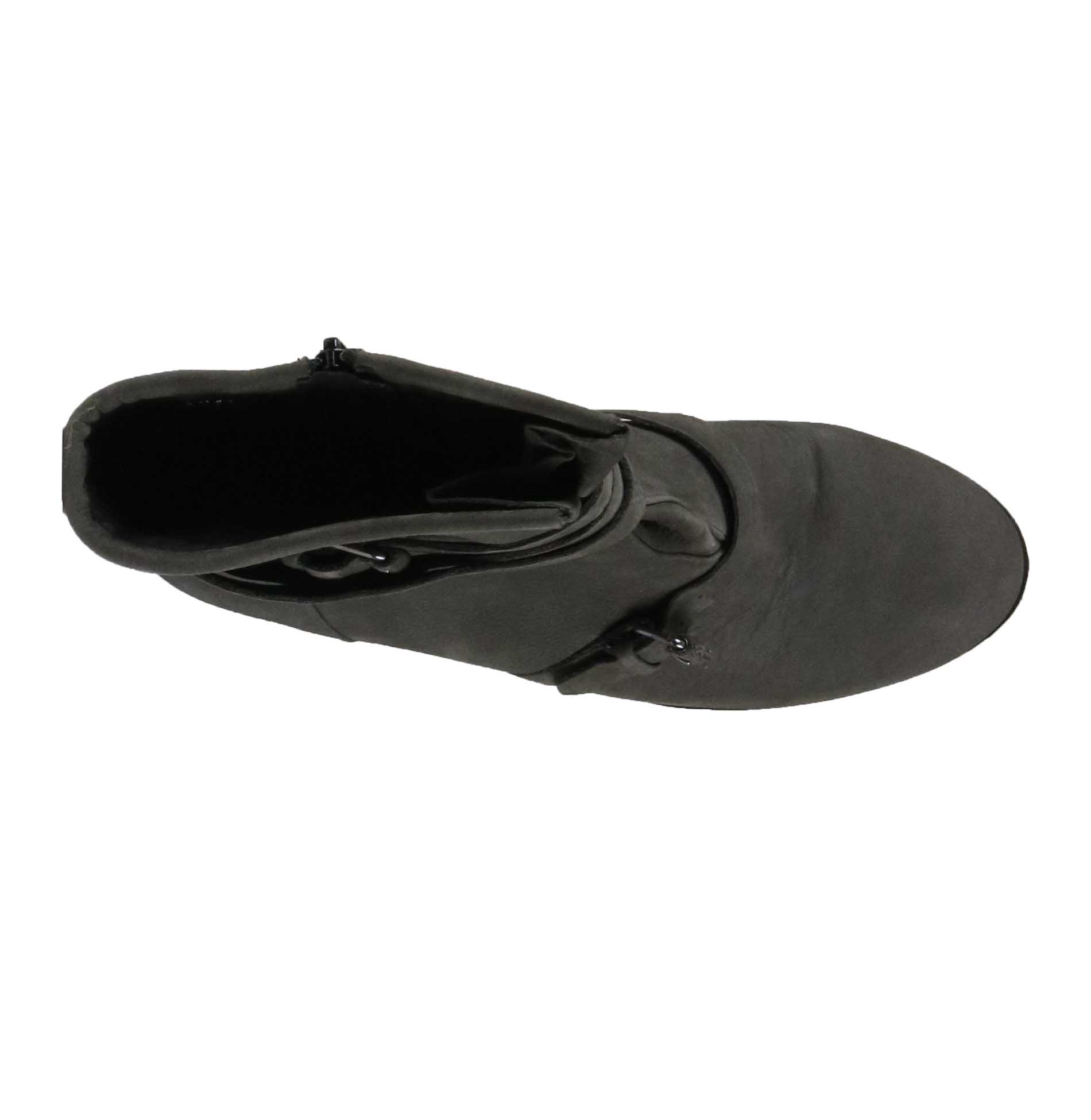Ankle boots by Bruno Premi in the color dark gray. There is a strap over the forefoot. Around the shaft a strap 3 mold wrapped. The boot has a round toe and the inside is lined with leather.