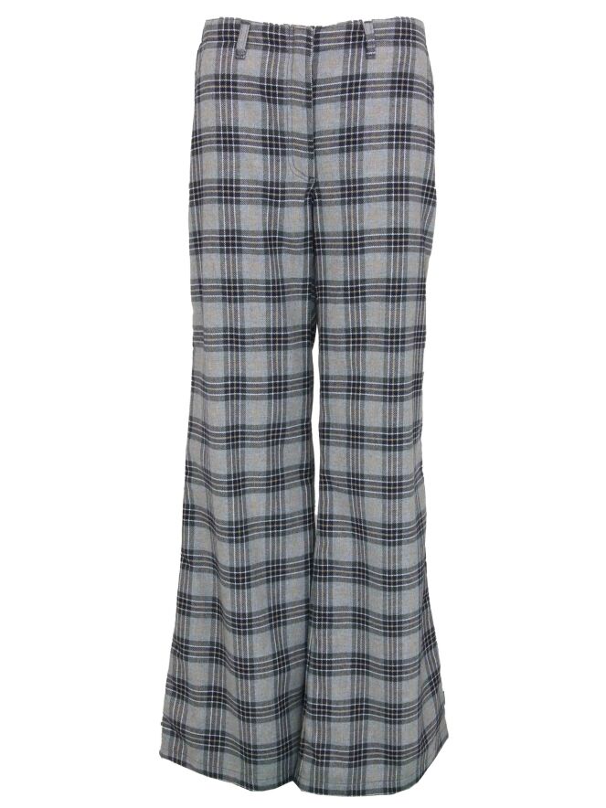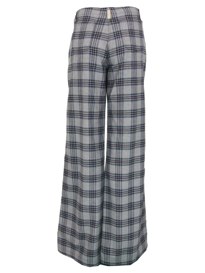 Wide pants by Byblos in a diamond print with the colors navy blue, camel and light gray. The pants have pockets and the bottom has the elephant pants. These pants can be washed at 30 degrees.