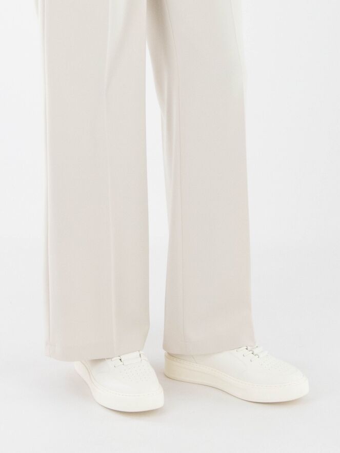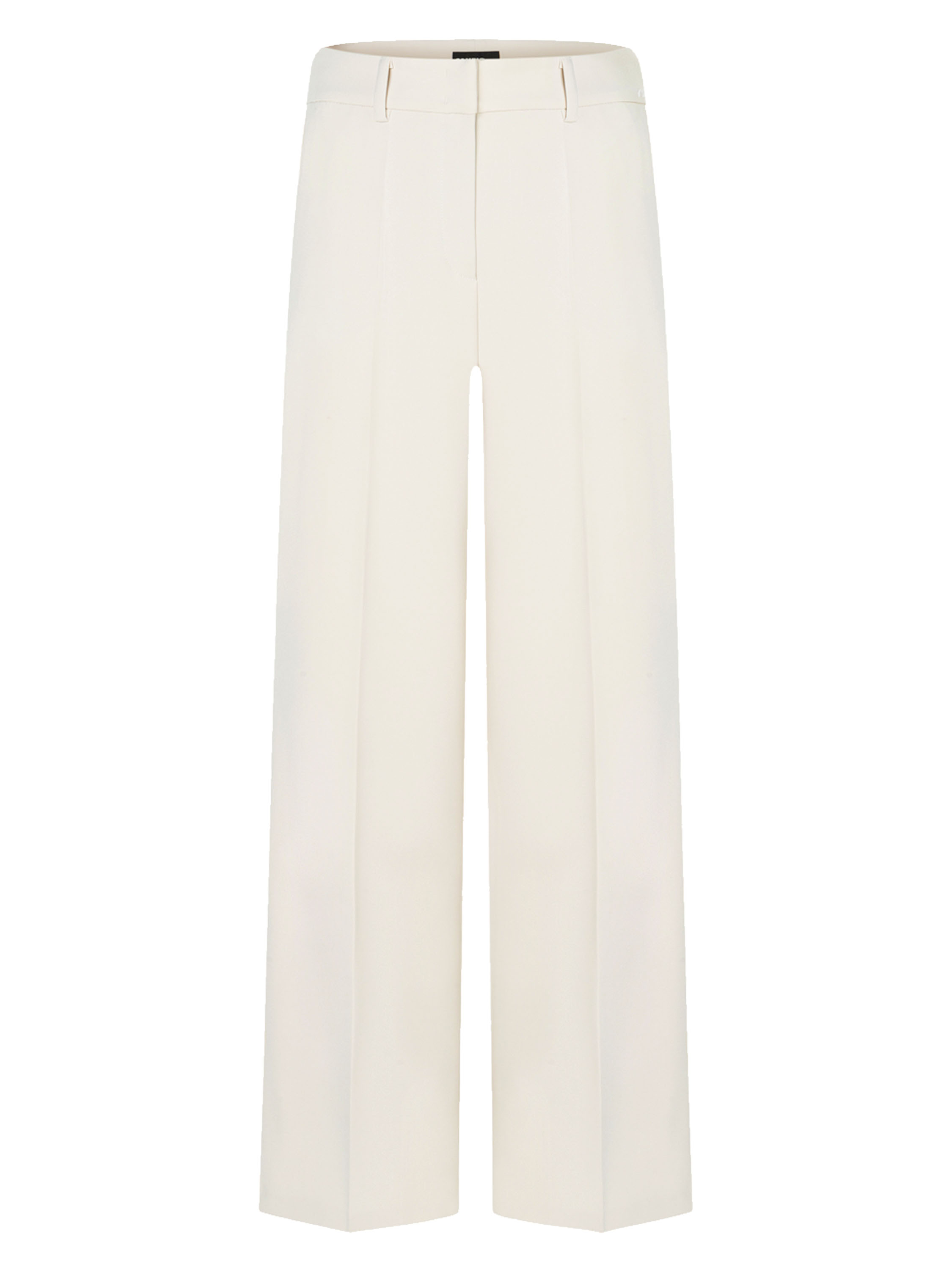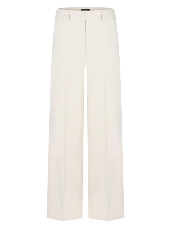 A luxurious straight-cut trousers by Cambio in off-white. A pressed crease runs down the center of the legs. The trousers feature side pockets and should be hand-washed.