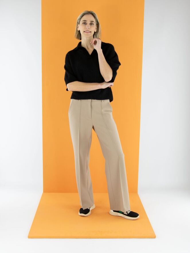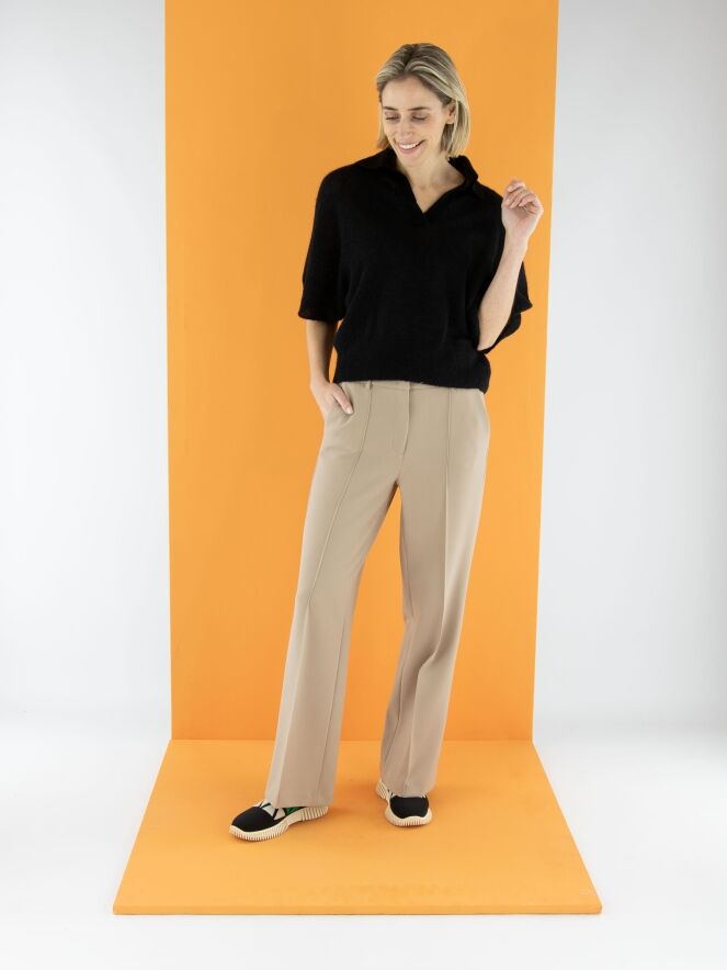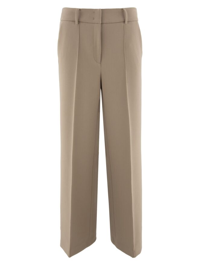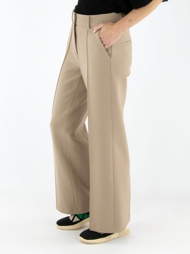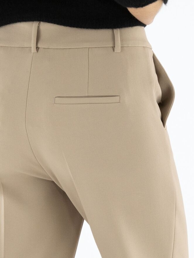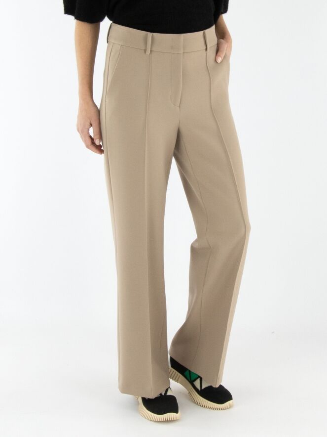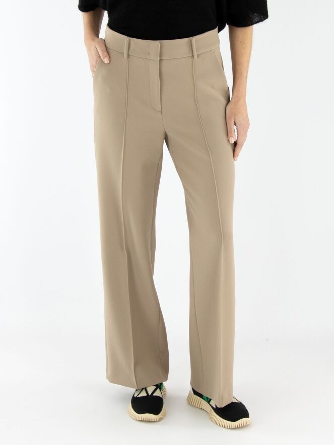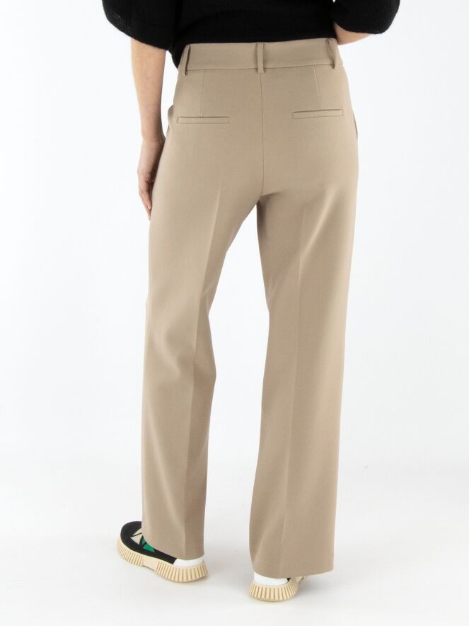 Trousers by Cambio in a rich taupe color. A seam runs down the center of the straight-cut legs. The trousers feature side pockets and can be washed at 30 degrees.