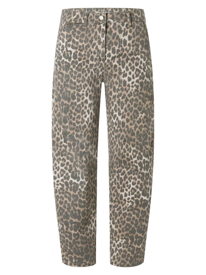 A pair of trousers by Cambio with a washed leopard print. The trousers are a 5-pocket model. A dart is incorporated at knee height. These jeans can be washed at 30 degrees.