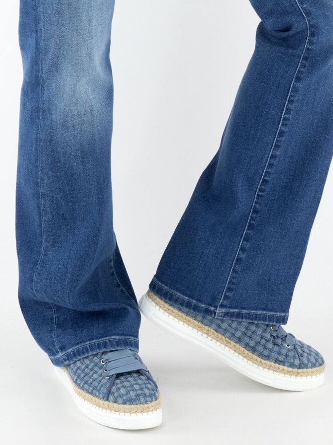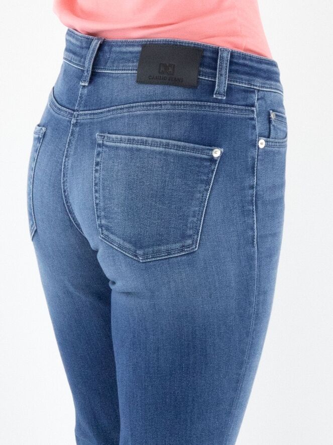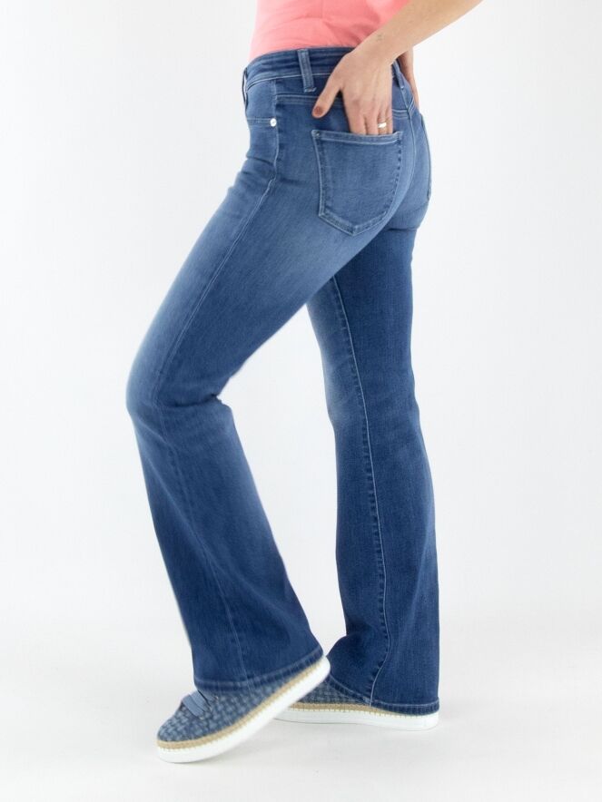 A washed flared jeans by Cambio in a basic denim color. The jeans feature a 5-pocket design and can be washed at 30 degrees.