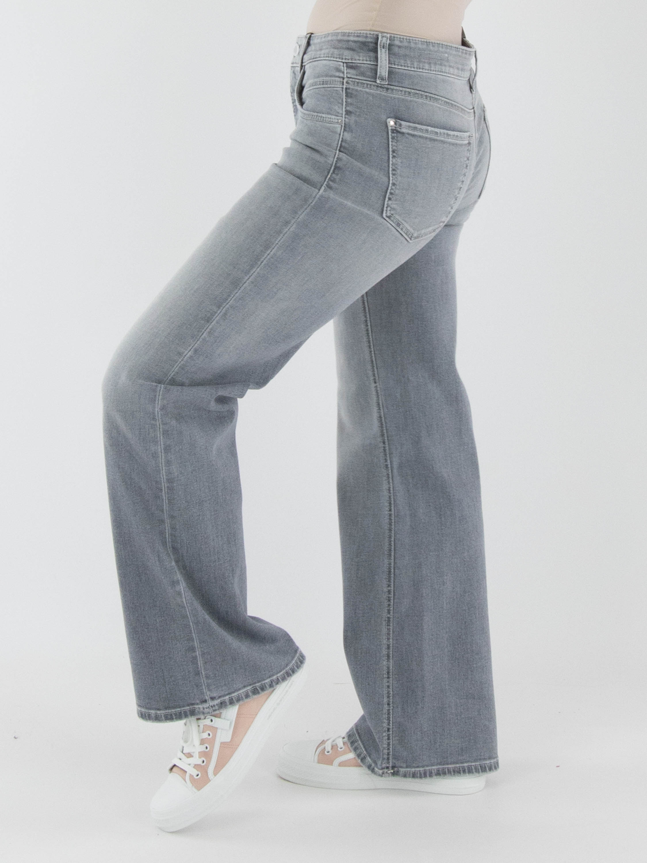 A wide-leg jeans by Cambio in a light grey washed color. The jeans feature a 5-pocket design. These jeans can be washed at 30 degrees.