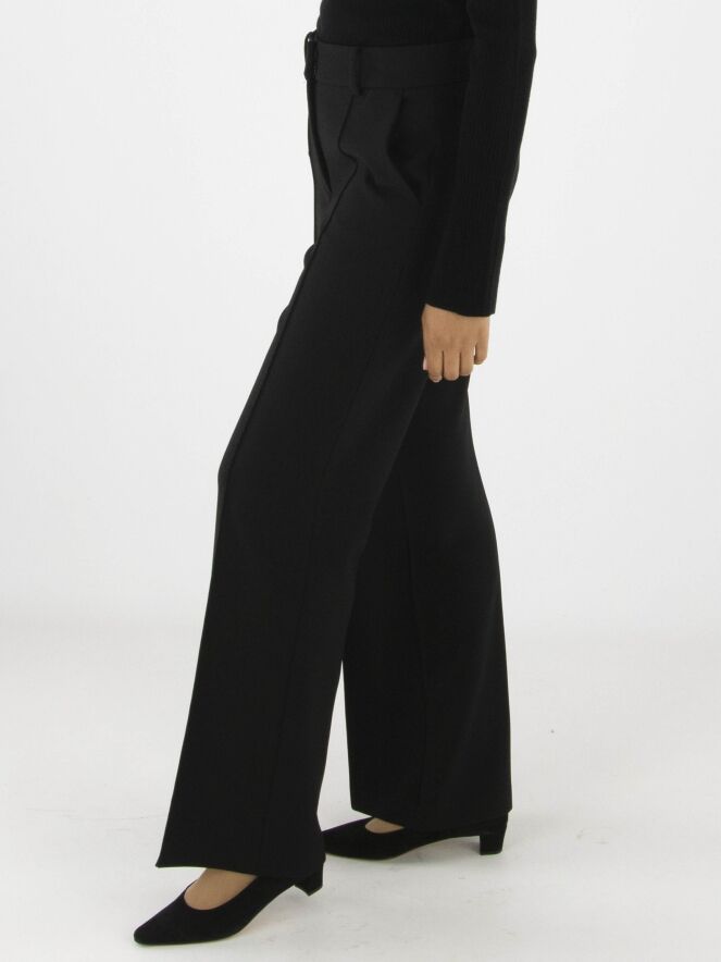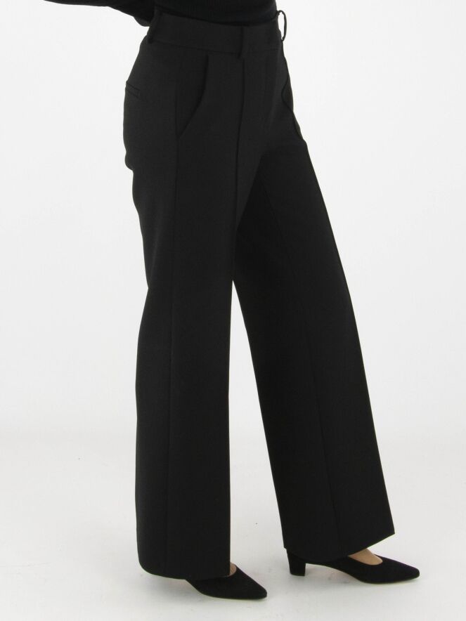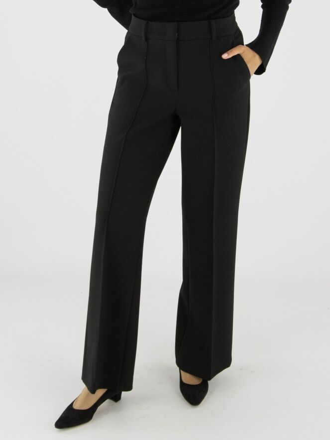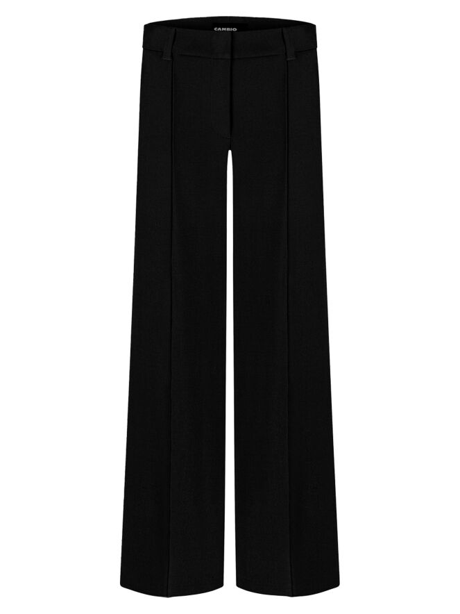 Trousers by Cambio in black. A reversed seam runs down the center of the legs. The trousers feature side pockets and can be washed at 30 degrees.
