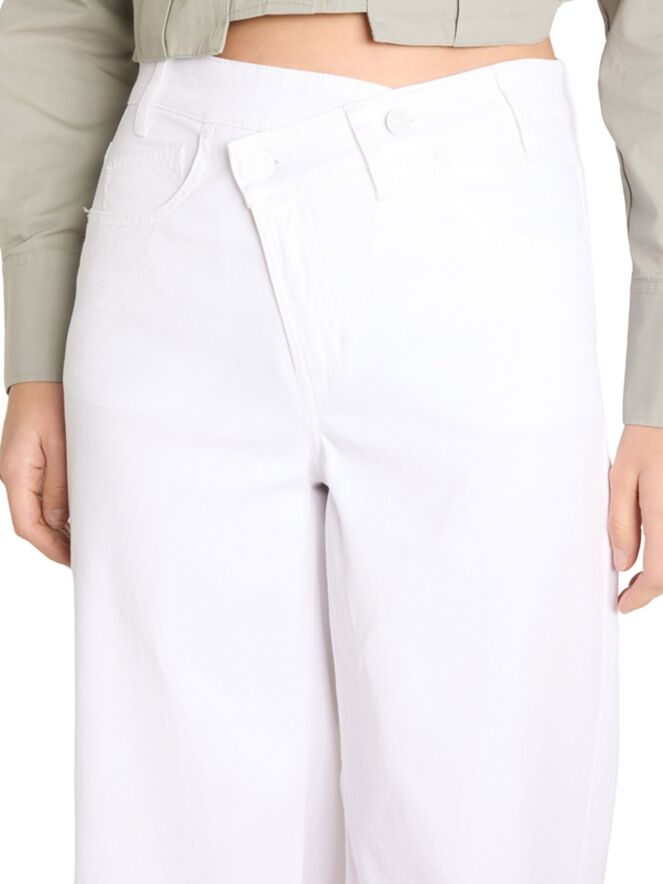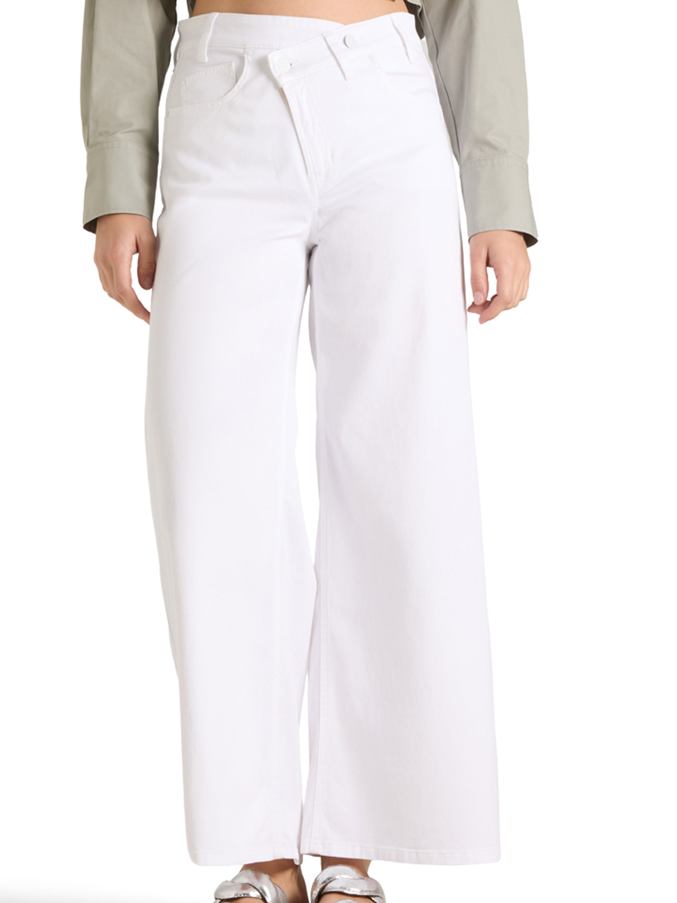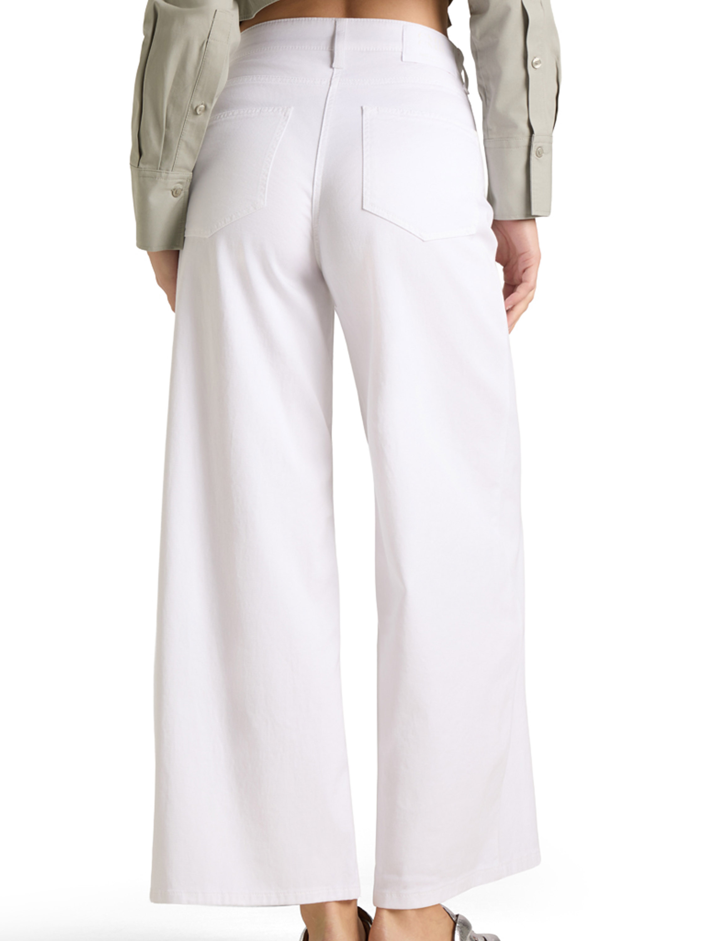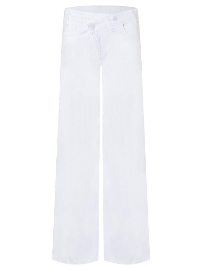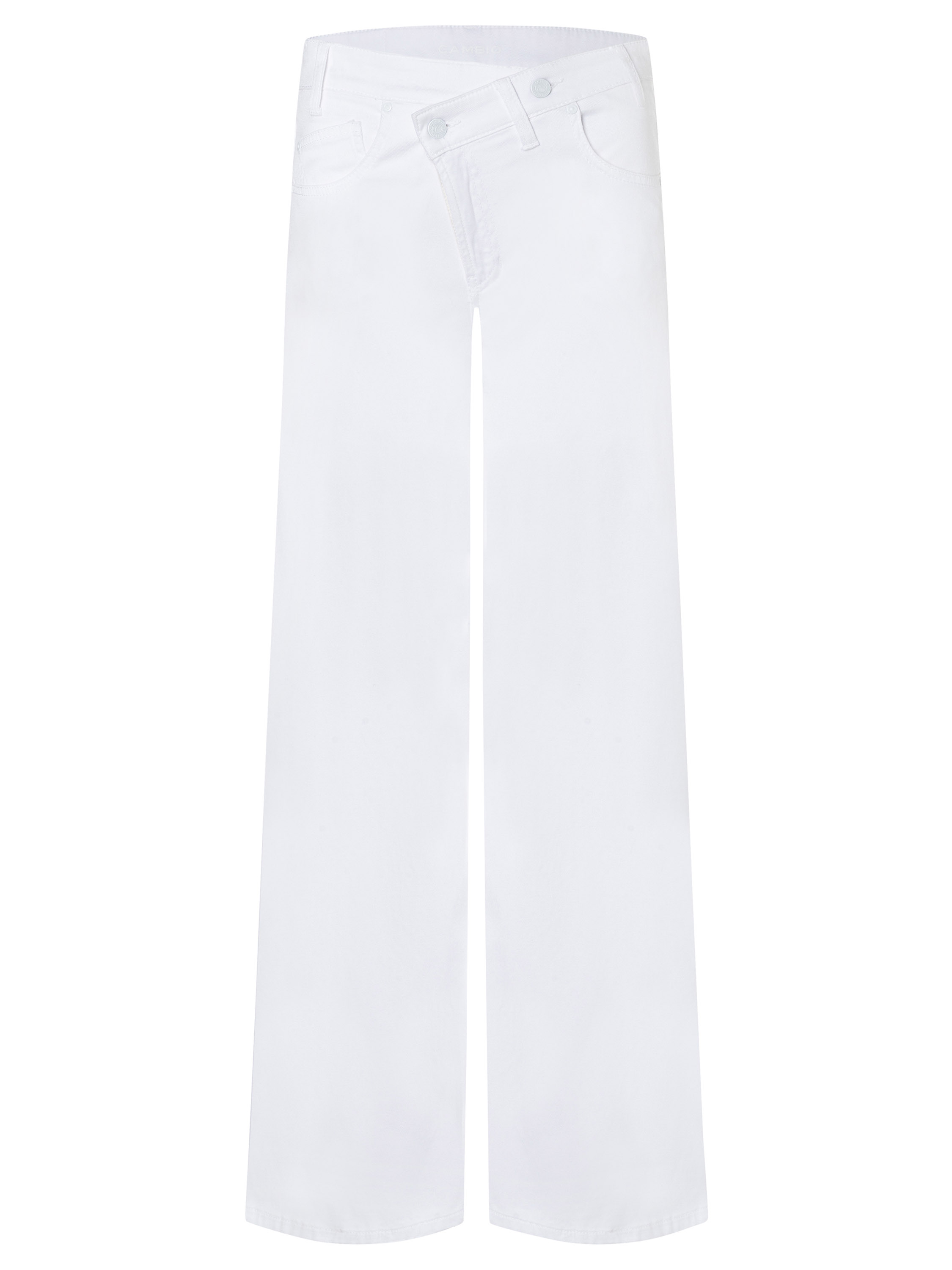 A Cambio jeans in white. Designed in a classic five-pocket style, it features an asymmetrical diagonal closure for a modern twist. The legs are cut straight for a clean silhouette. This piece can be washed at 30 degrees.