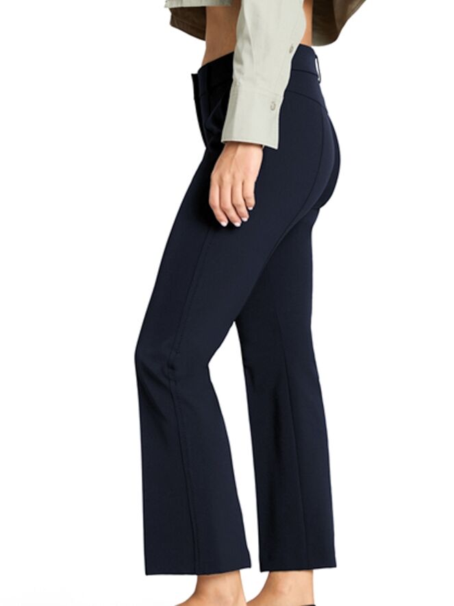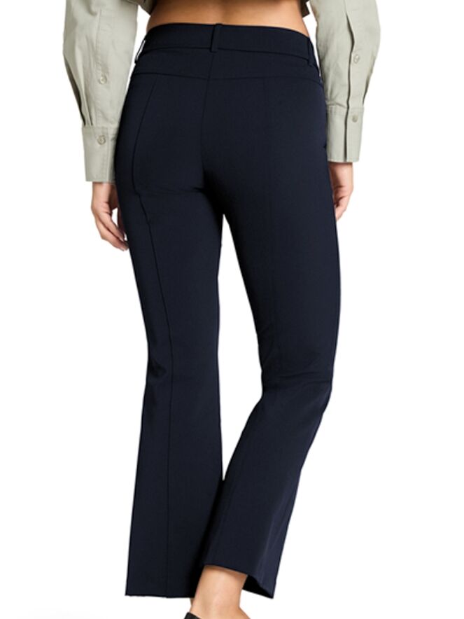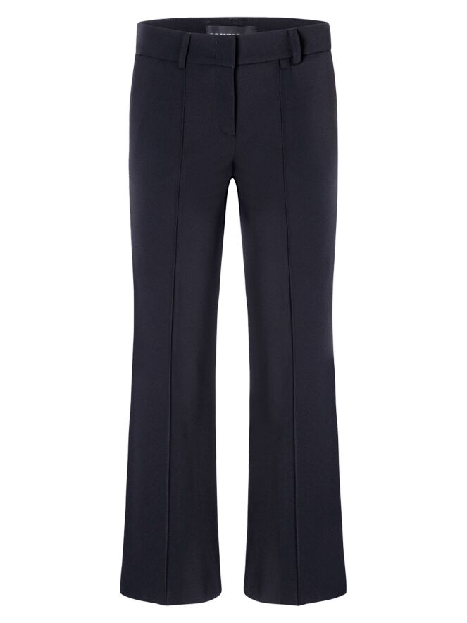 Trousers from Cambio in navy blue. An inverted seam runs down the center of the legs. Along the sides, there is a decorative black trim with a tone-on-tone stitch. The trousers feature slit pockets and can be hand-washed.