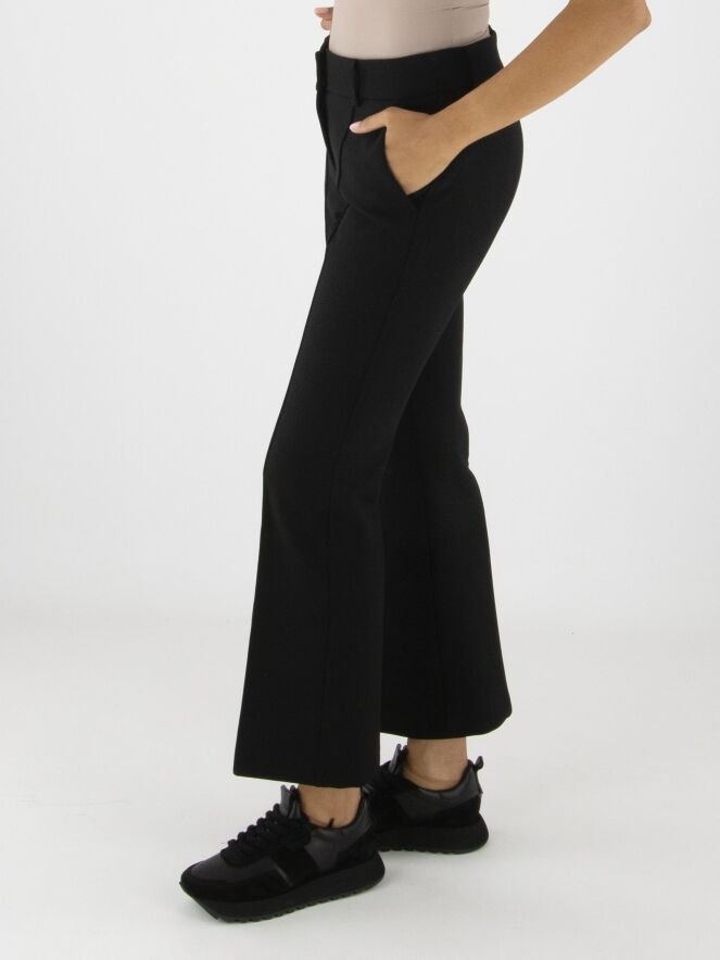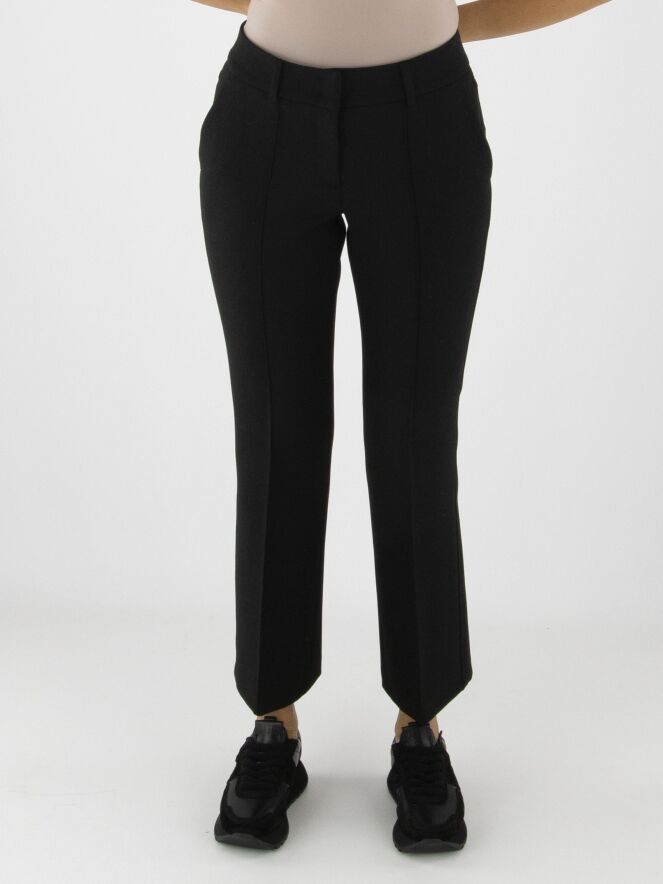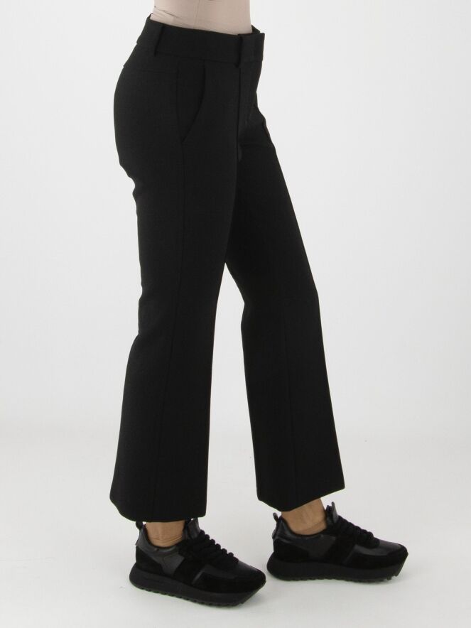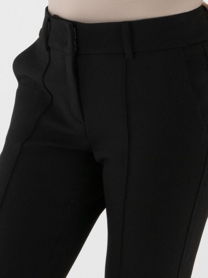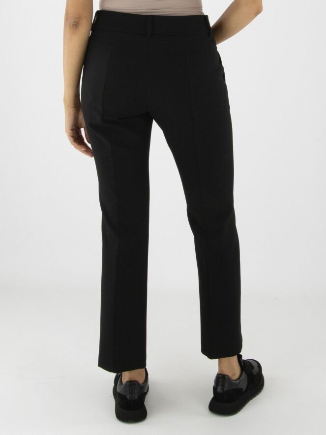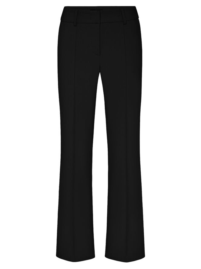A pair of black trousers by Cambio. An inverted seam runs down the center of the legs. A decorative topstitch serves as piping along the sides. The trousers feature side pockets and can be washed at 30 degrees.