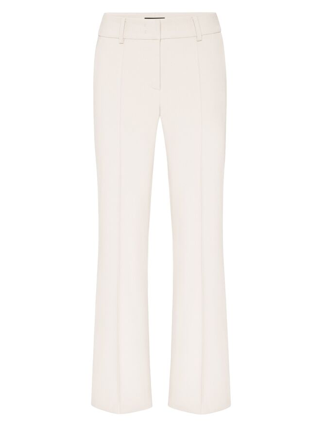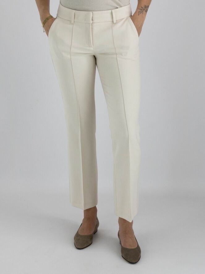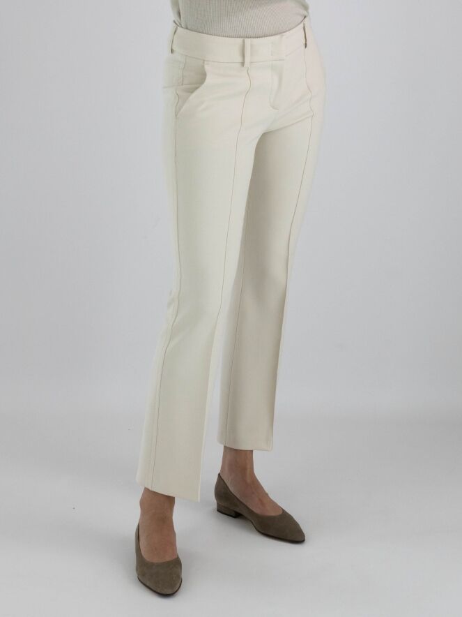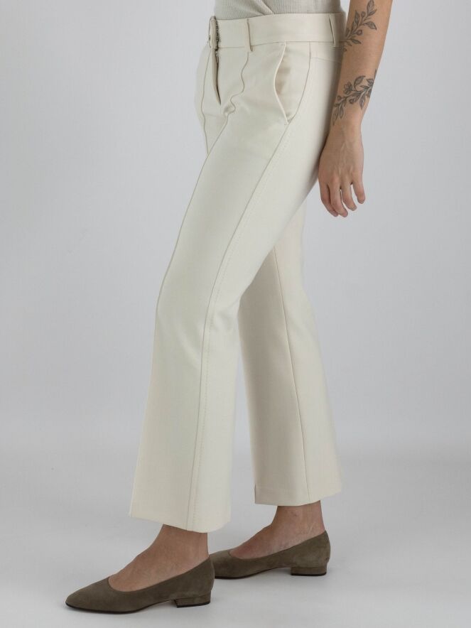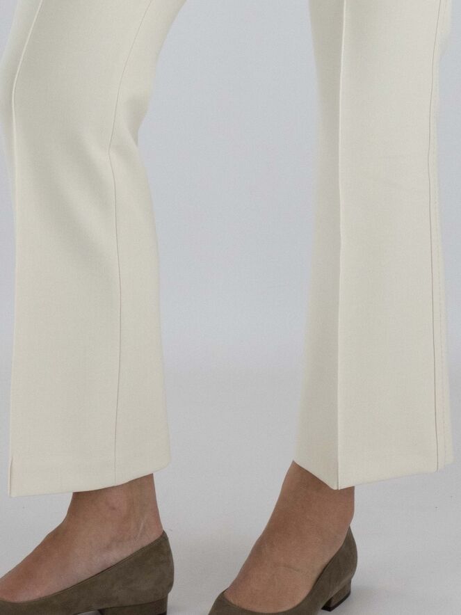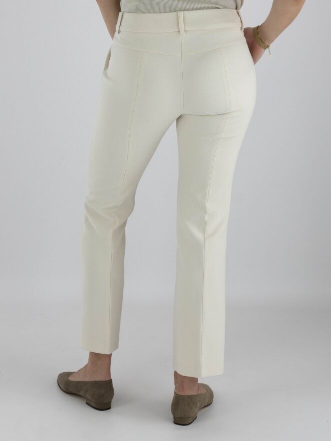 Trousers from Cambio in beige. There is a decorative stitch seam along the sides. There is also a seam down the center of the legs. The trousers have side pockets and can be washed at 30 degrees.