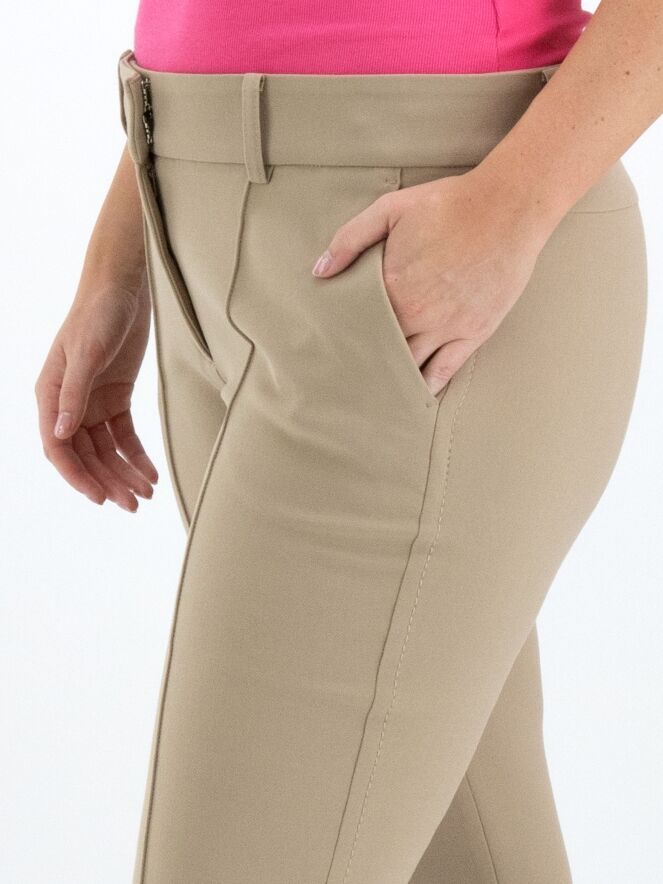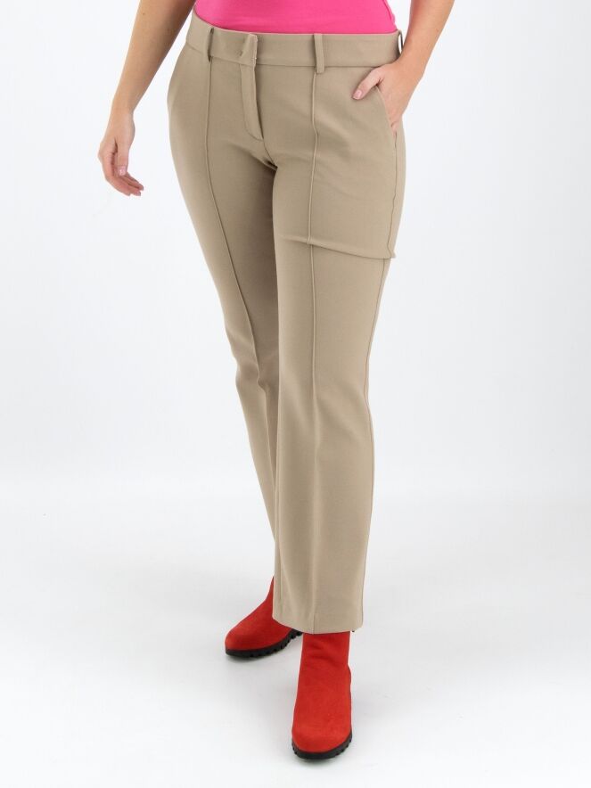 Trousers from Cambio in camel color. Along the sides, there is a decorative seam. There is also a seam down the middle of the legs. The trousers have side pockets and can be washed at 30 degrees.