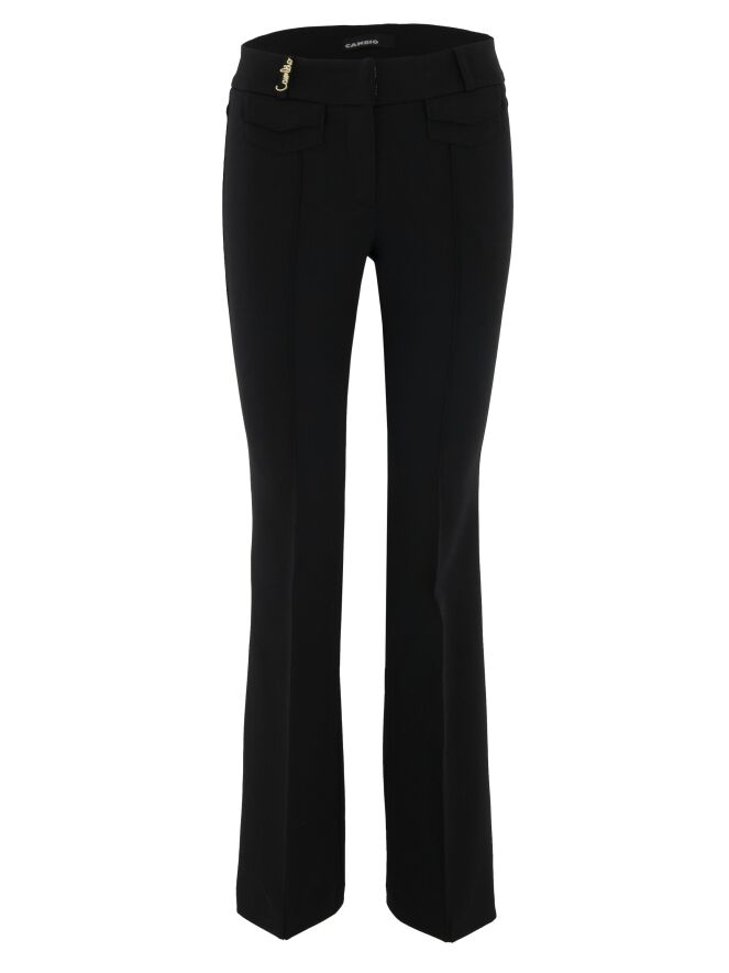 Trousers from Cambio in black. A seam runs down the centre of the legs. Below the waistband, there are two decorative pockets. The trousers have slit pockets and can be washed at 30 degrees.