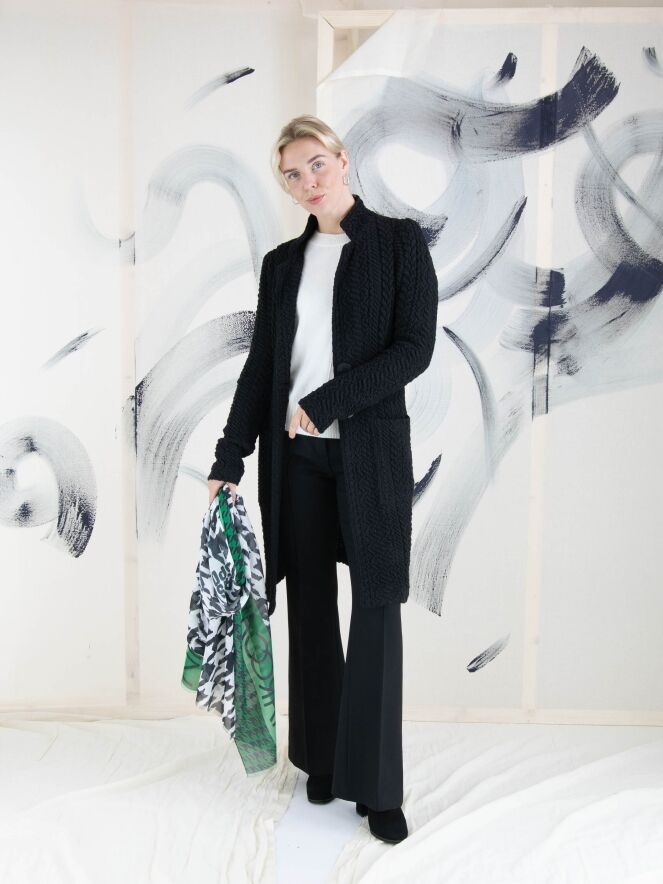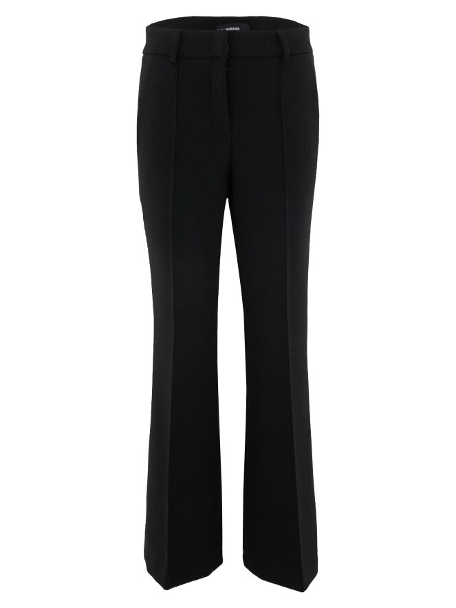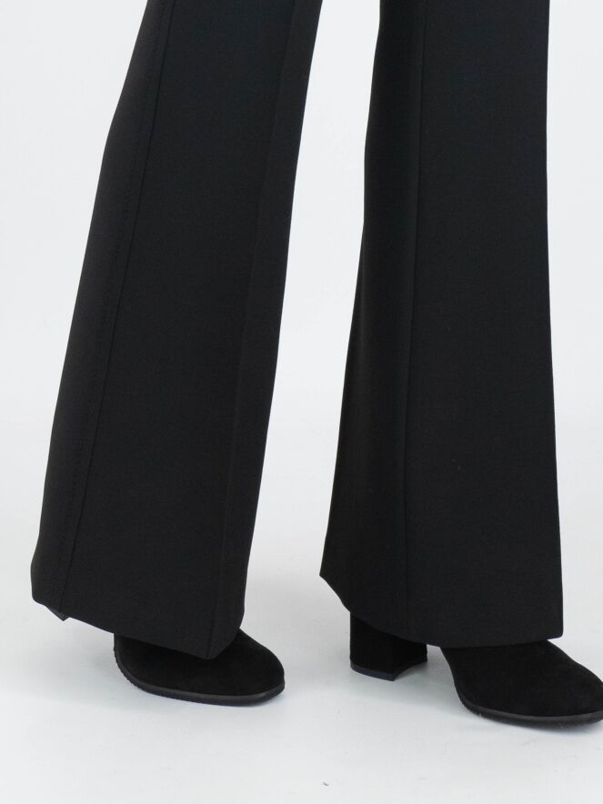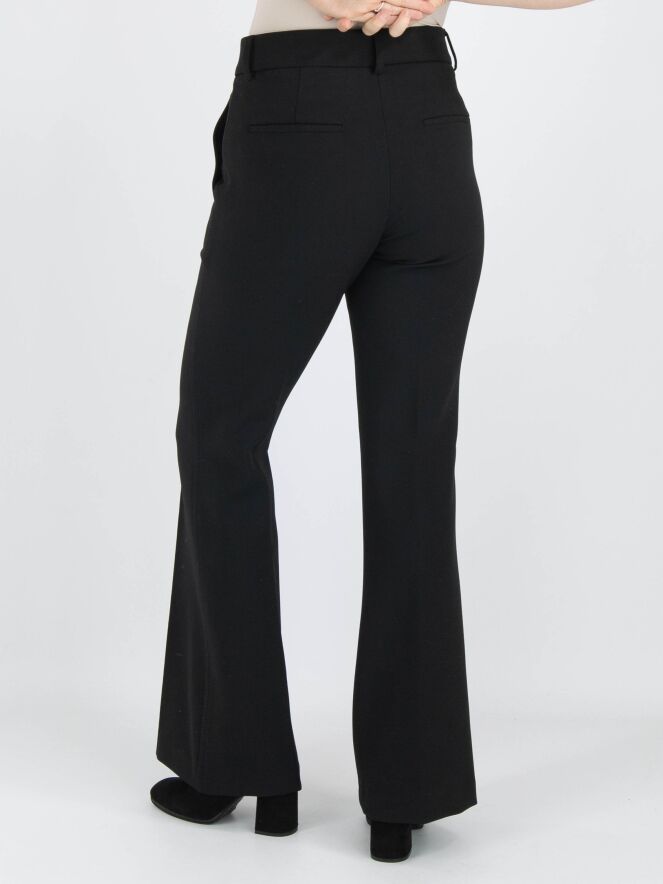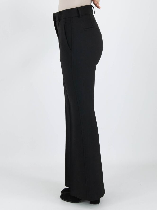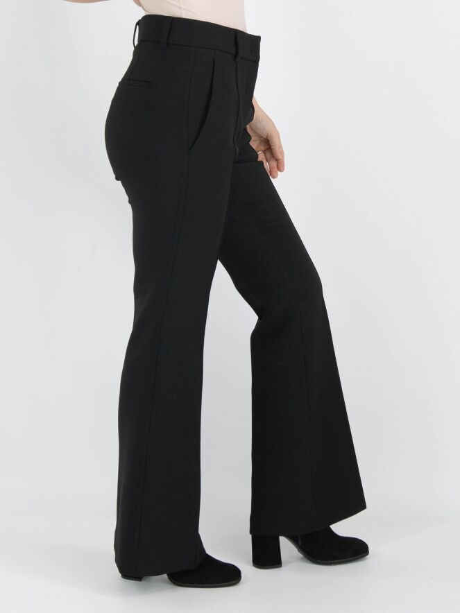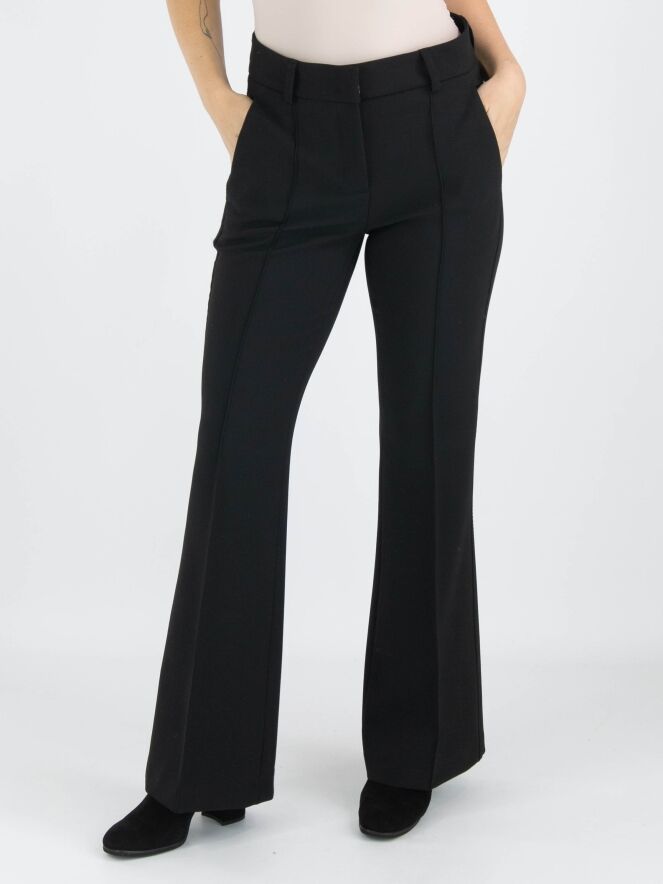 A flared pants by Cambio in black color. In the center of the legs is an inverted seam. Along the sides, there is a tonal trim with decorative stitching. The pants have slit pockets and can be washed at 30 degrees.