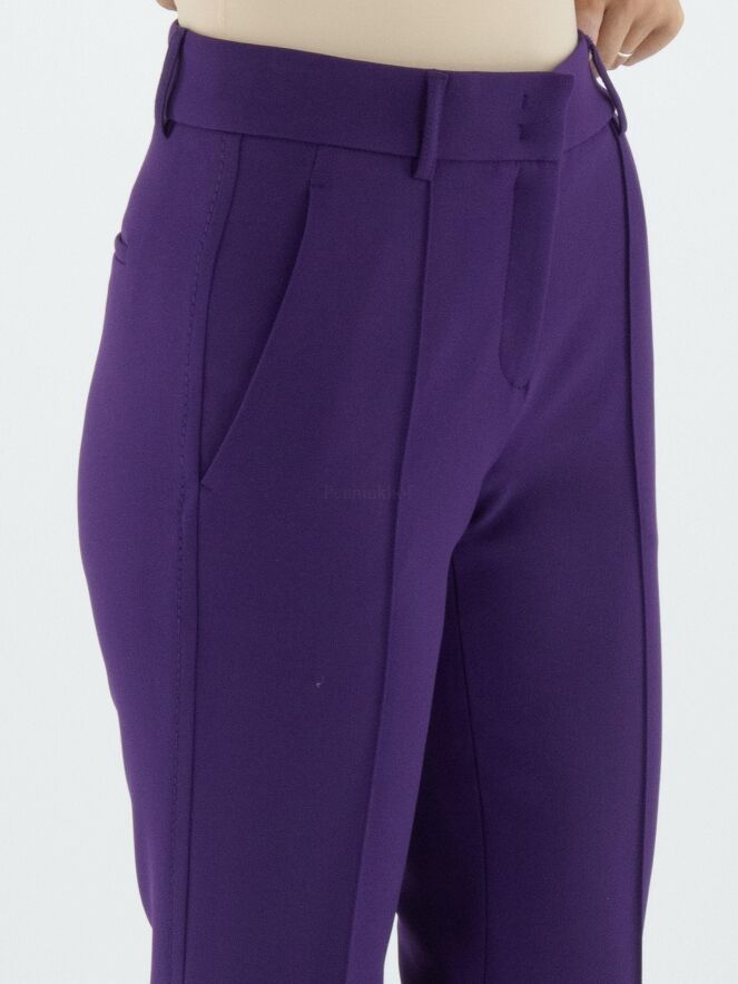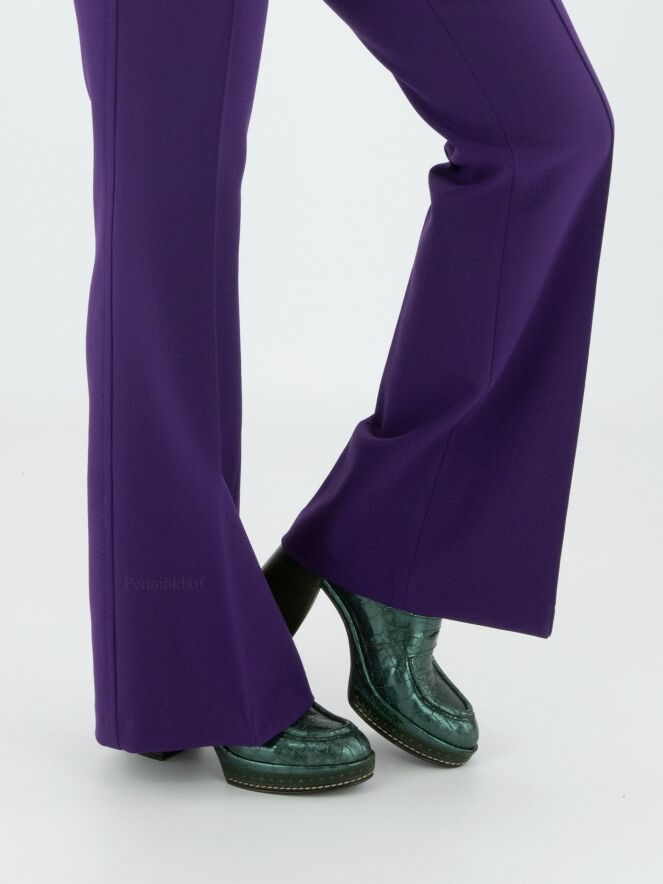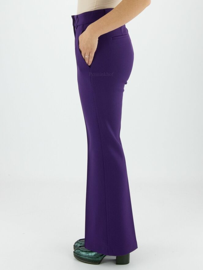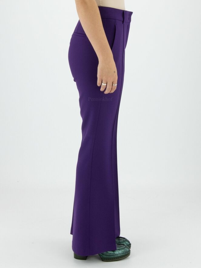 Flared trousers from Cambio in the colour purple. The trousers have side pockets and a stitched seam in the middle of the legs. On the sides is a decorative "ton sur ton" stitching seam. These trousers can be washed at 30 degrees.