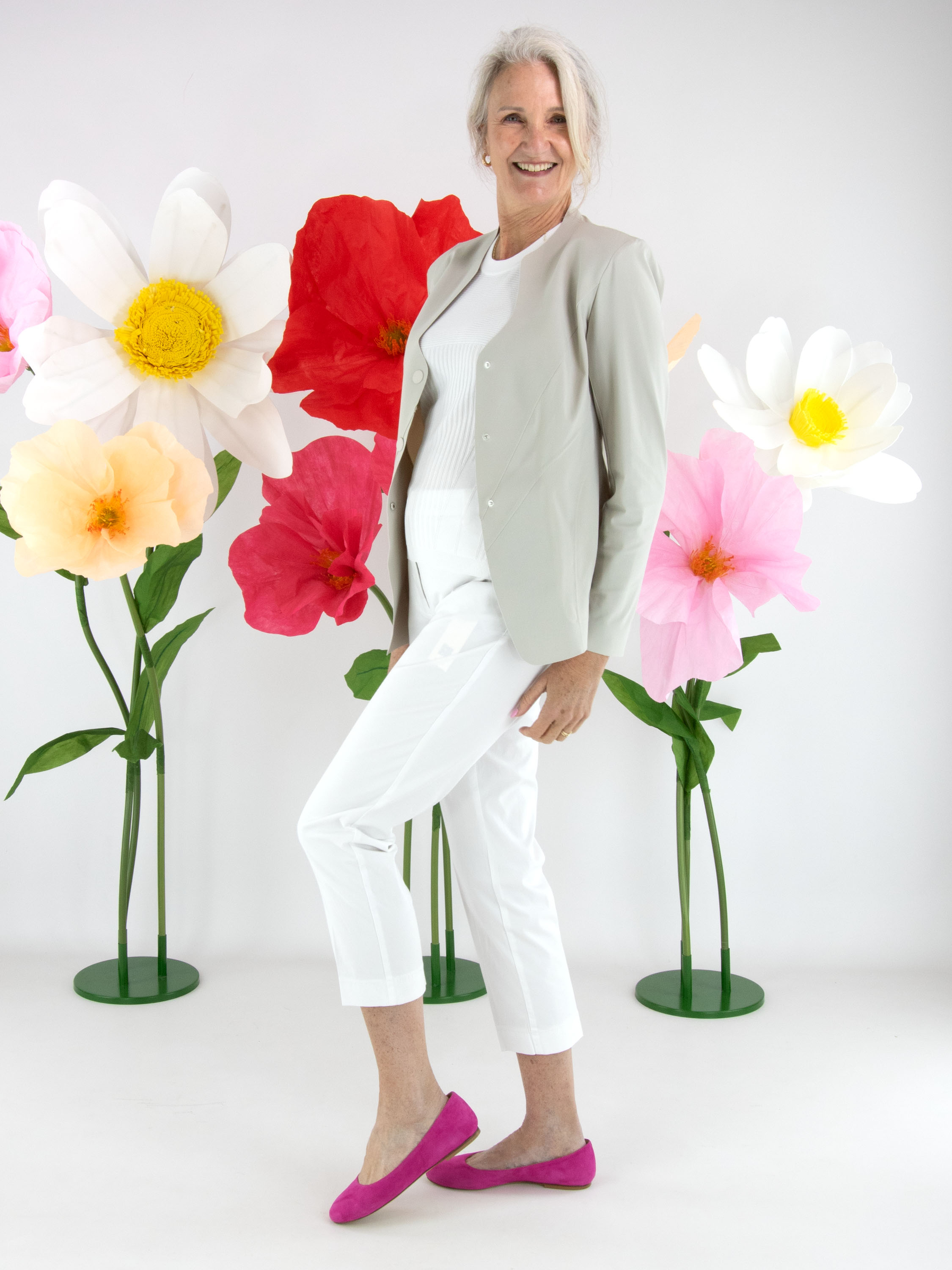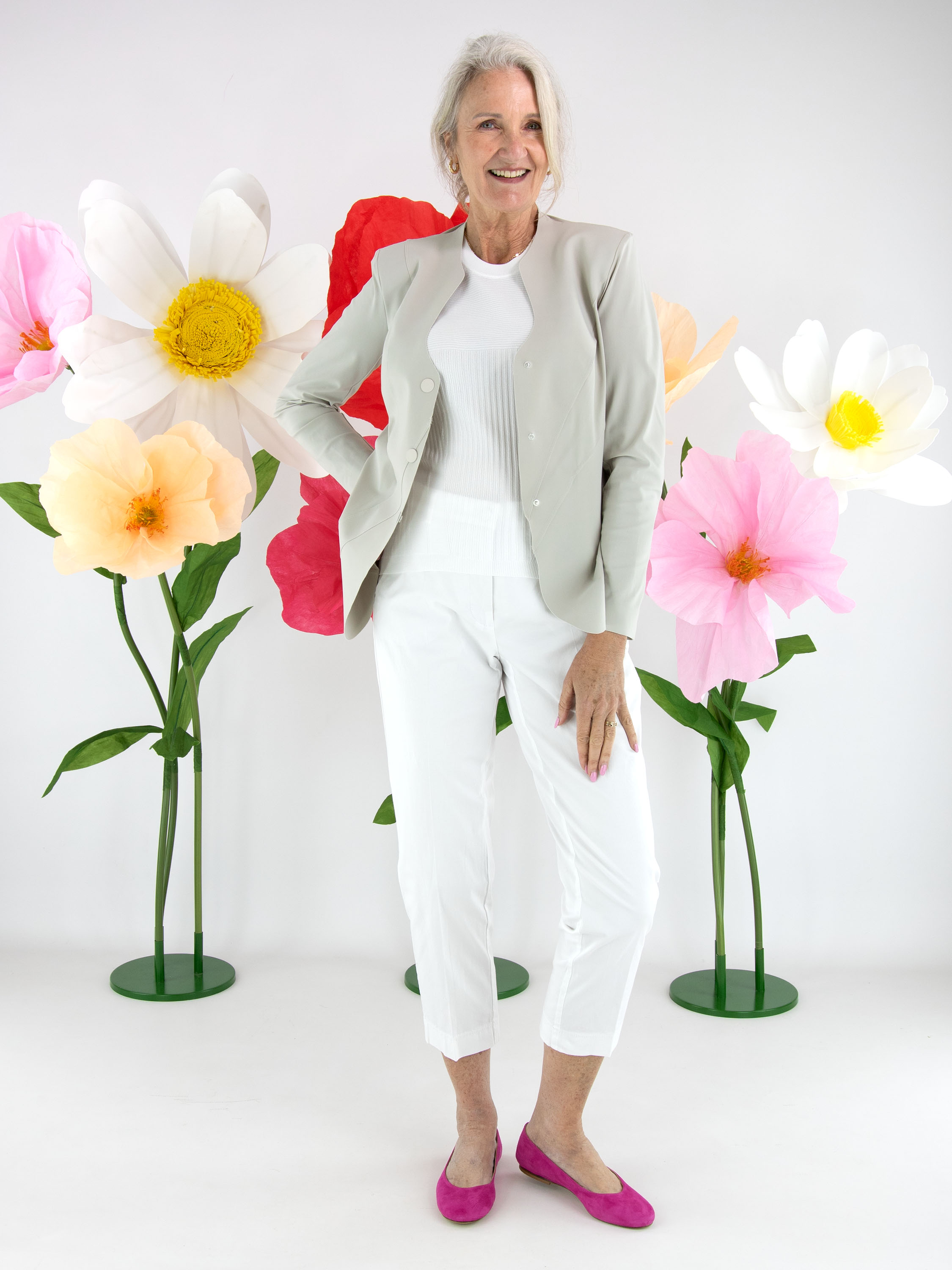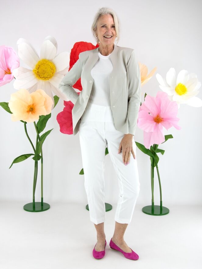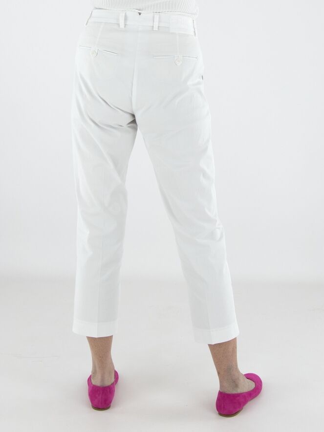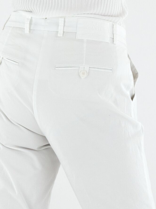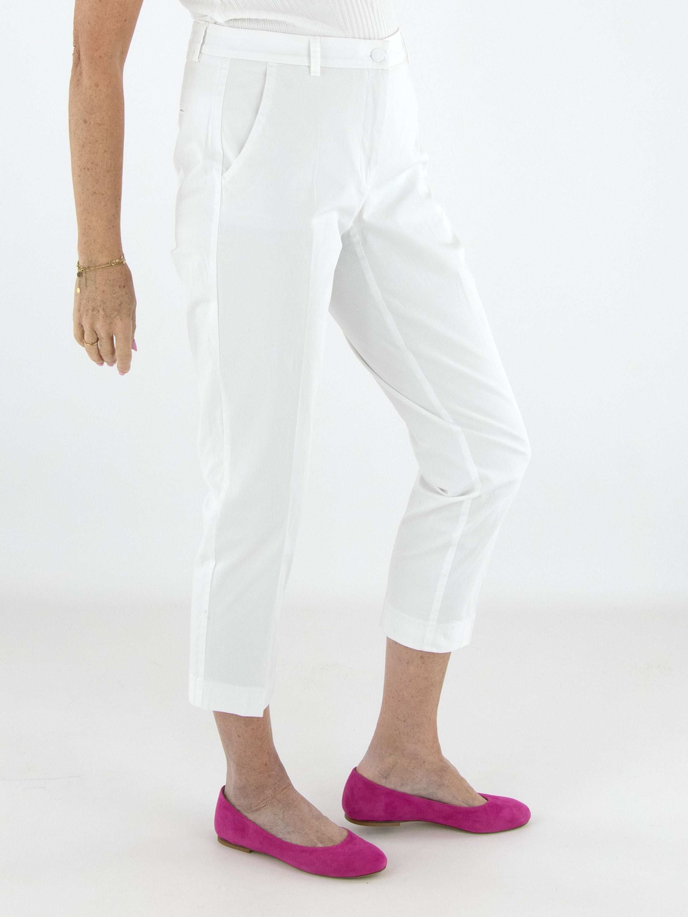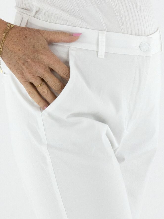 Trousers by Cambio in a crisp white shade. A pressed crease along the center of the legs adds a refined and timeless touch. Designed with side pockets, these trousers can be washed at 30 degrees.
