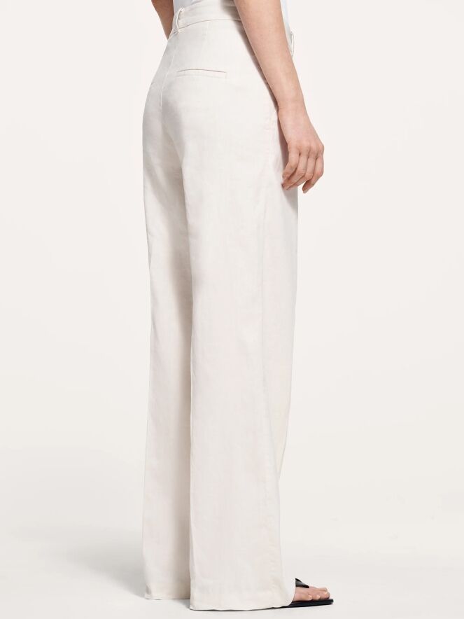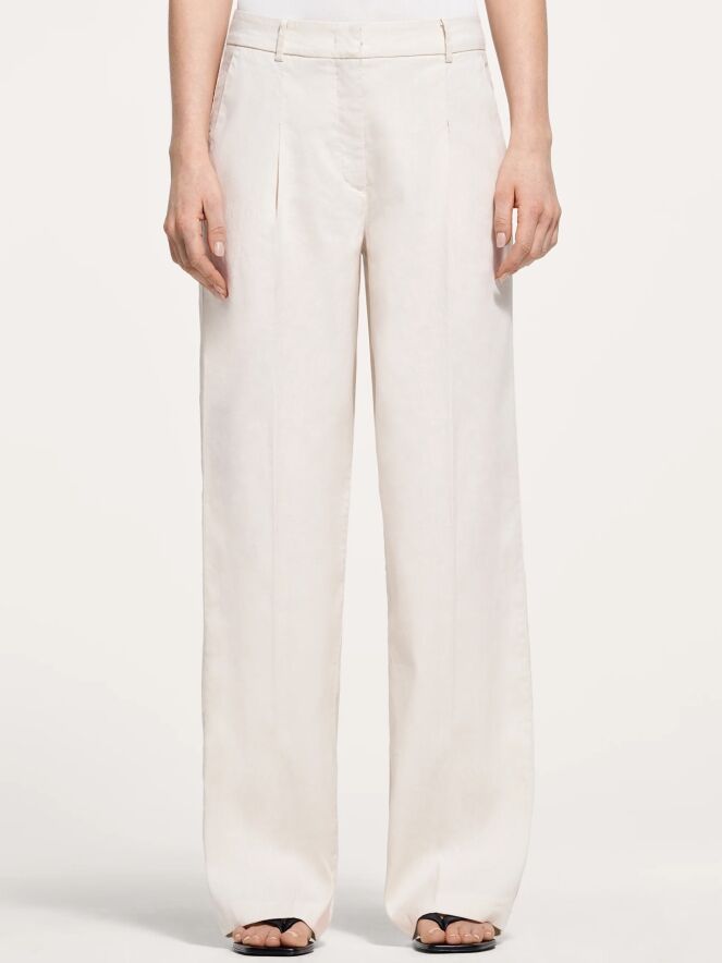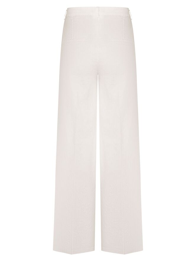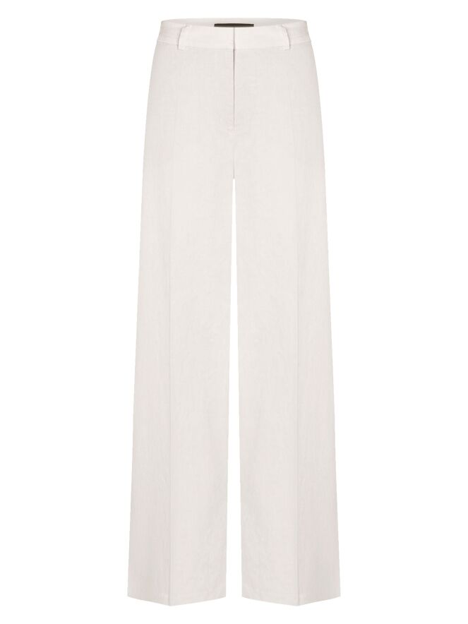 Trousers from Cambio in sand color. The trousers are cut straight and have side pockets. In the middle of the legs, there is a creased pleat. These trousers should be hand washed.